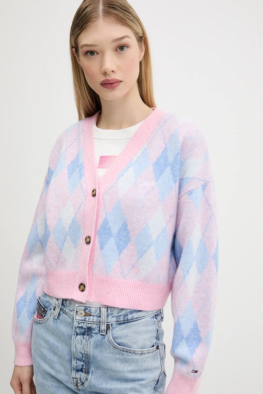 Tommy Jeans kardigan damski kolor niebieski DW0DW21180