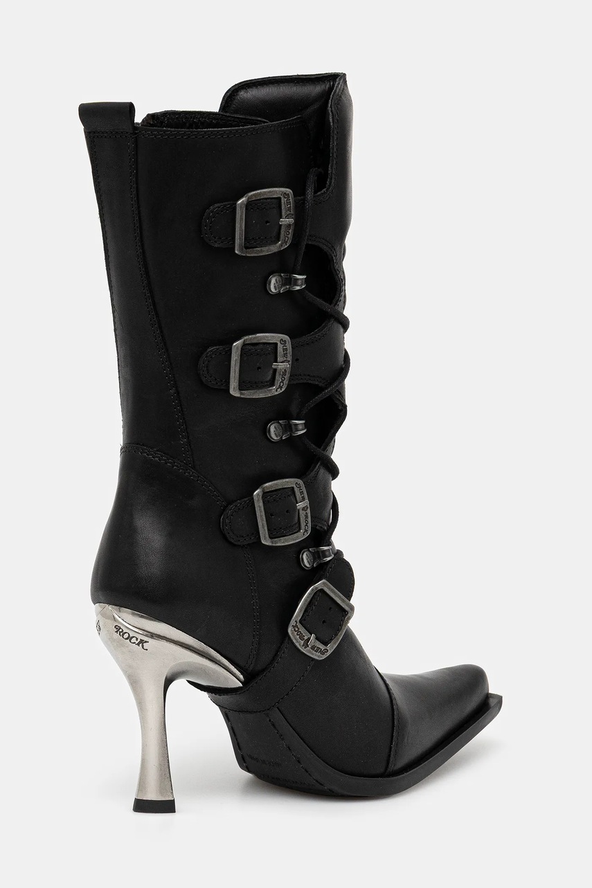 New Rock botki skórzane damskie kolor czarny na szpilce M-9373-S2