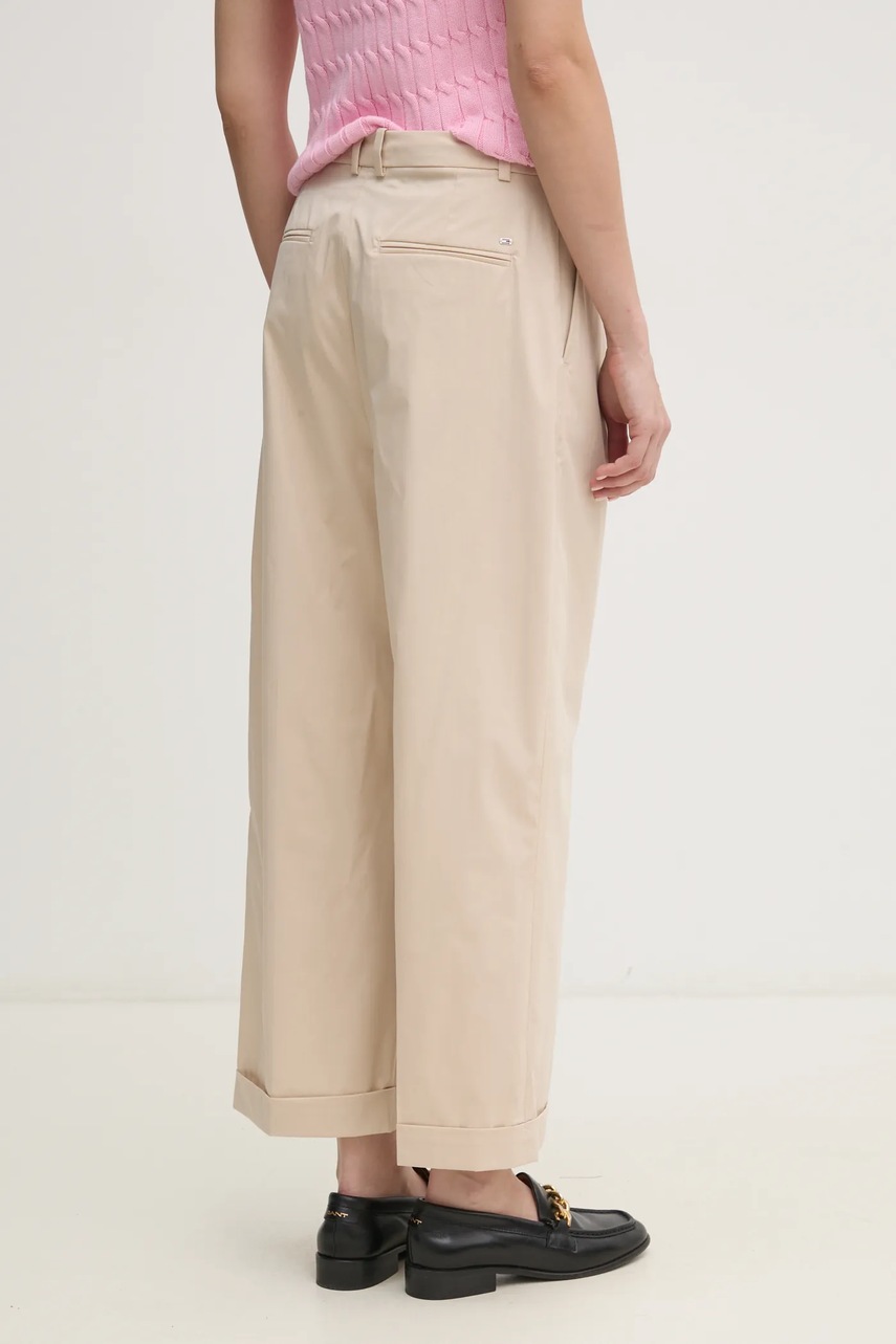 Tommy Hilfiger spodnie damskie kolor beżowy fason chinos high waist WW0WW44783