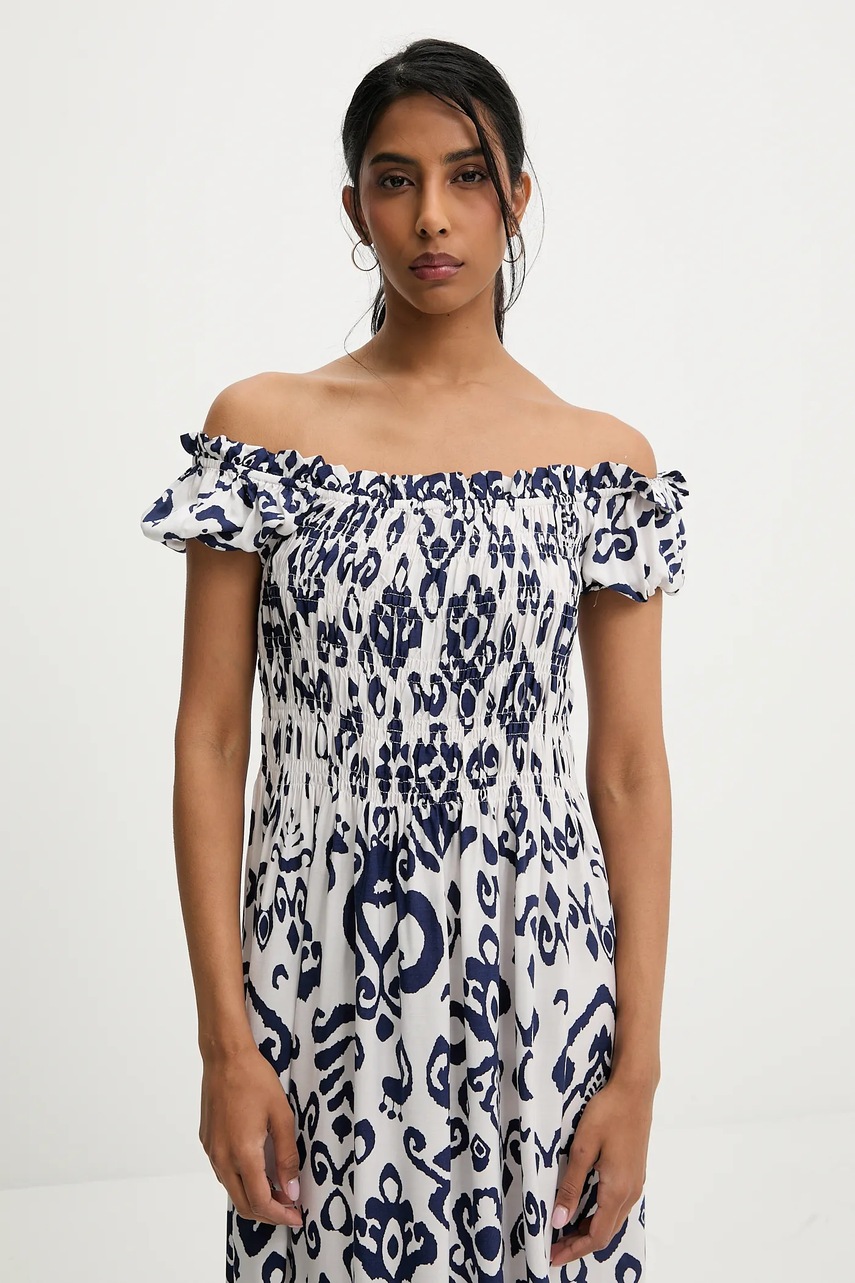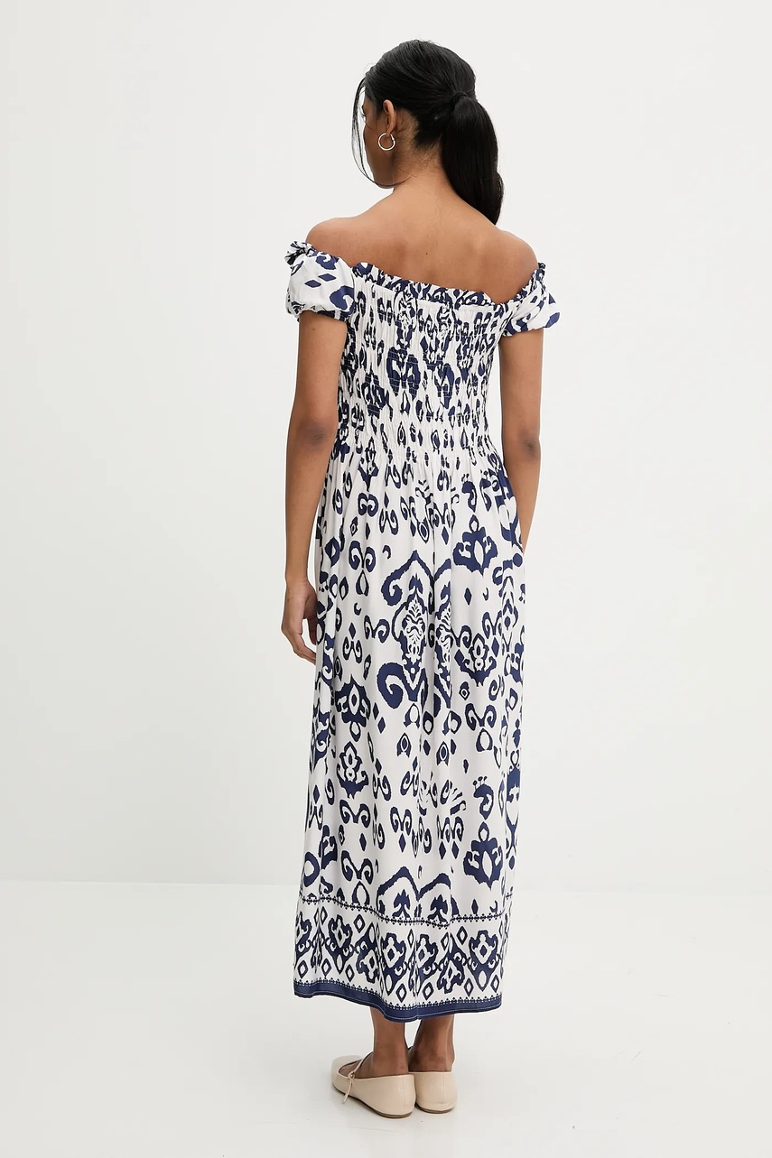 Answear.LAB sukienka kolor niebieski midi rozkloszowana