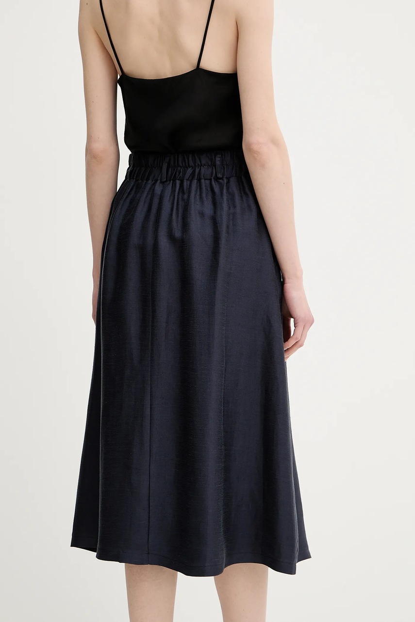 La Petite Française spódnica z domieszką lnu JOSEPHINE kolor granatowy midi rozkloszowana JOSEPHINE