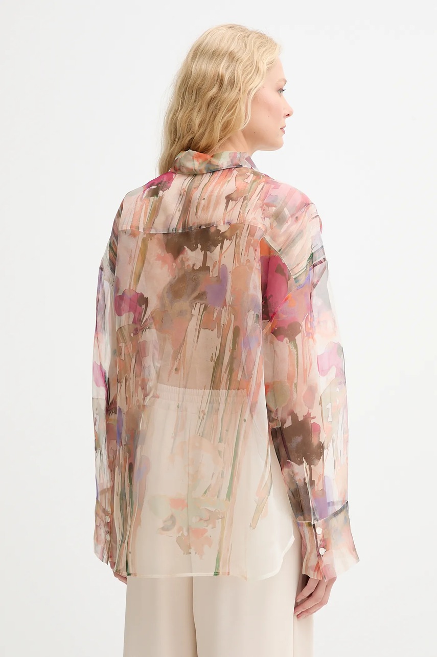 MUNTHE koszula jedwabna PRIAM damska kolor beżowy relaxed z kołnierzykiem klasycznym 252103025219