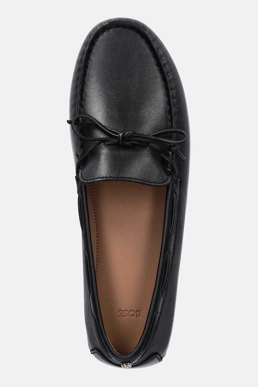 BOSS mokasyny skórzane Roxanne damskie kolor czarny na płaskim obcasie 50548639