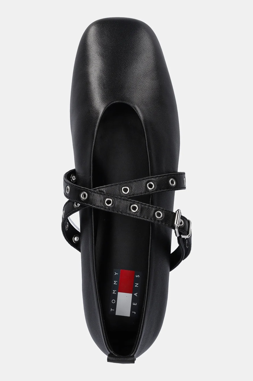 Tommy Jeans baleriny skórzane TJW LEATHER MARYJANE BALLERINA kolor czarny EN0EN02868