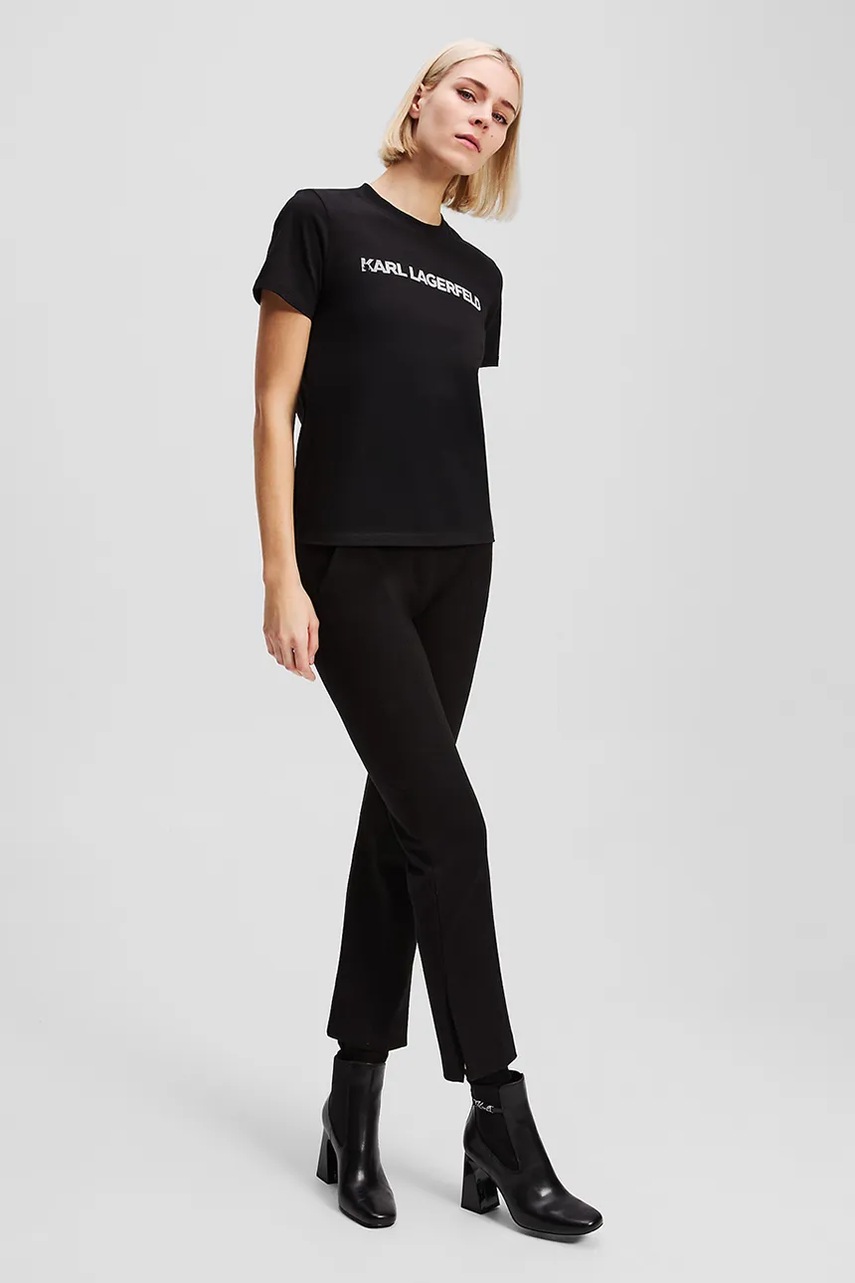 Karl Lagerfeld t-shirt bawełniany ELONGATED LOGO damski kolor czarny A3W17102