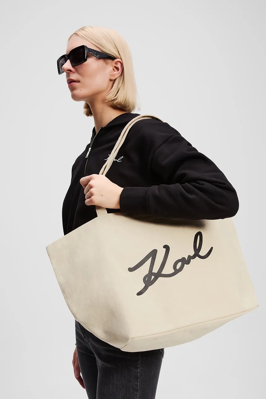 Karl Lagerfeld torebka bawełniana K/SIGNATURE kolor beżowy A3W50108
