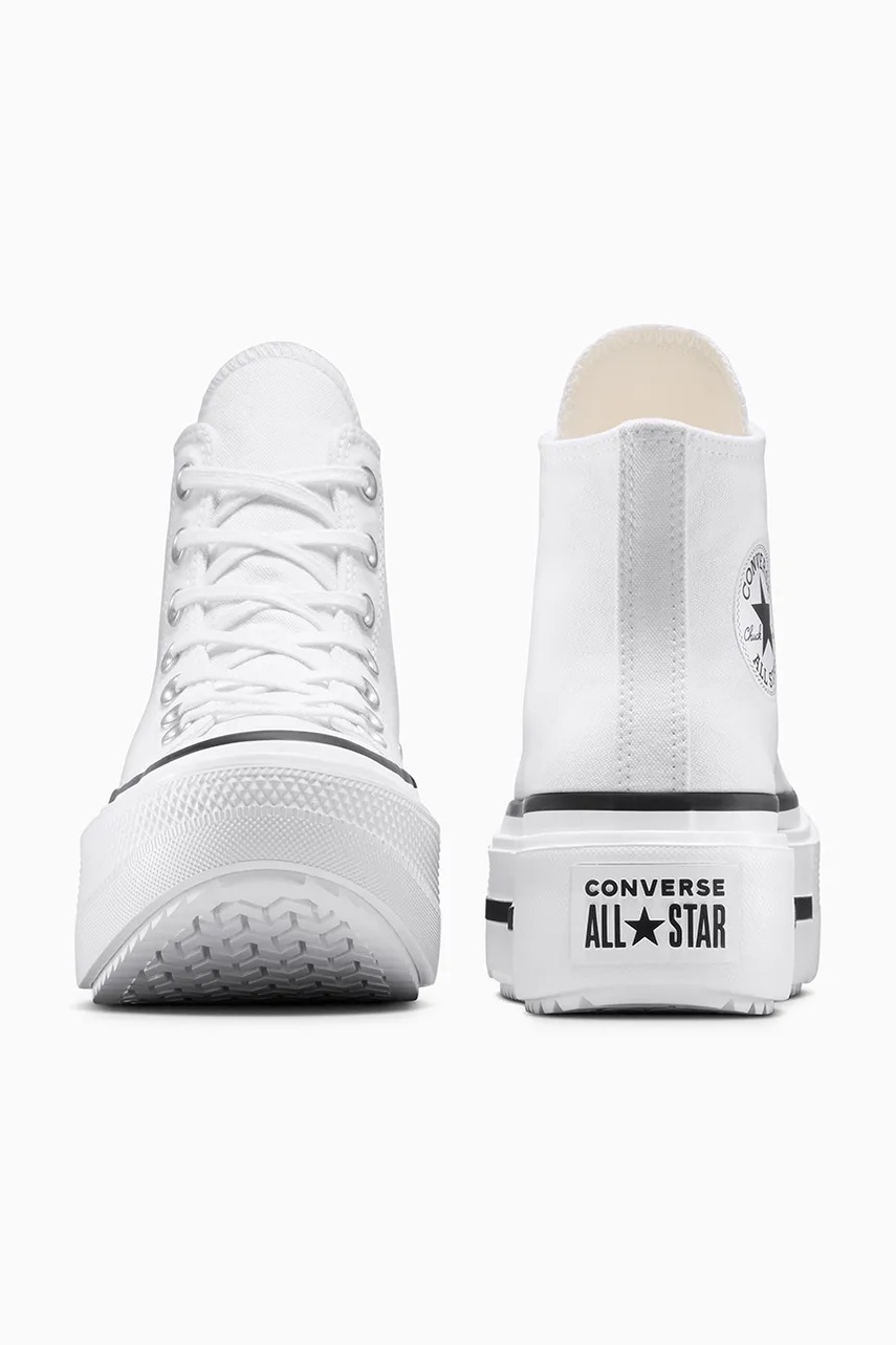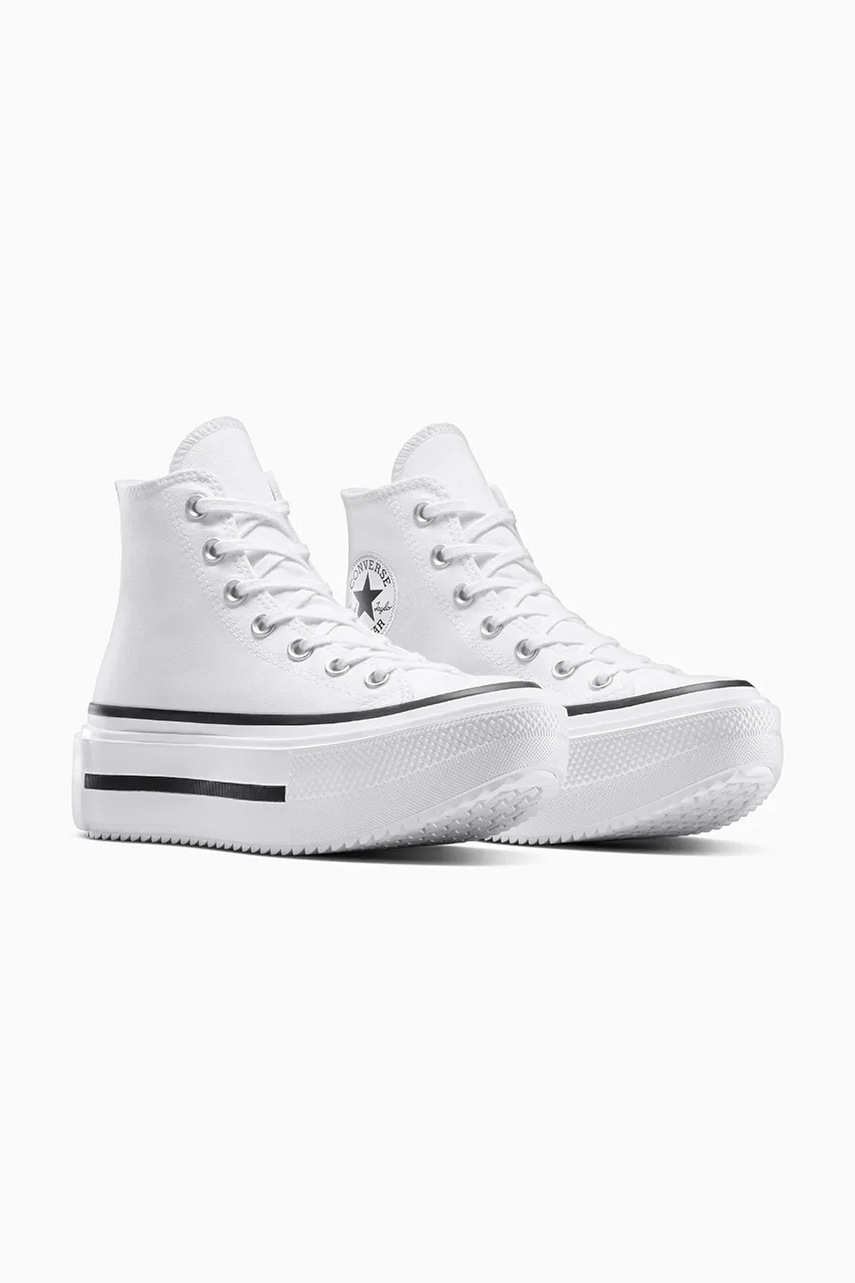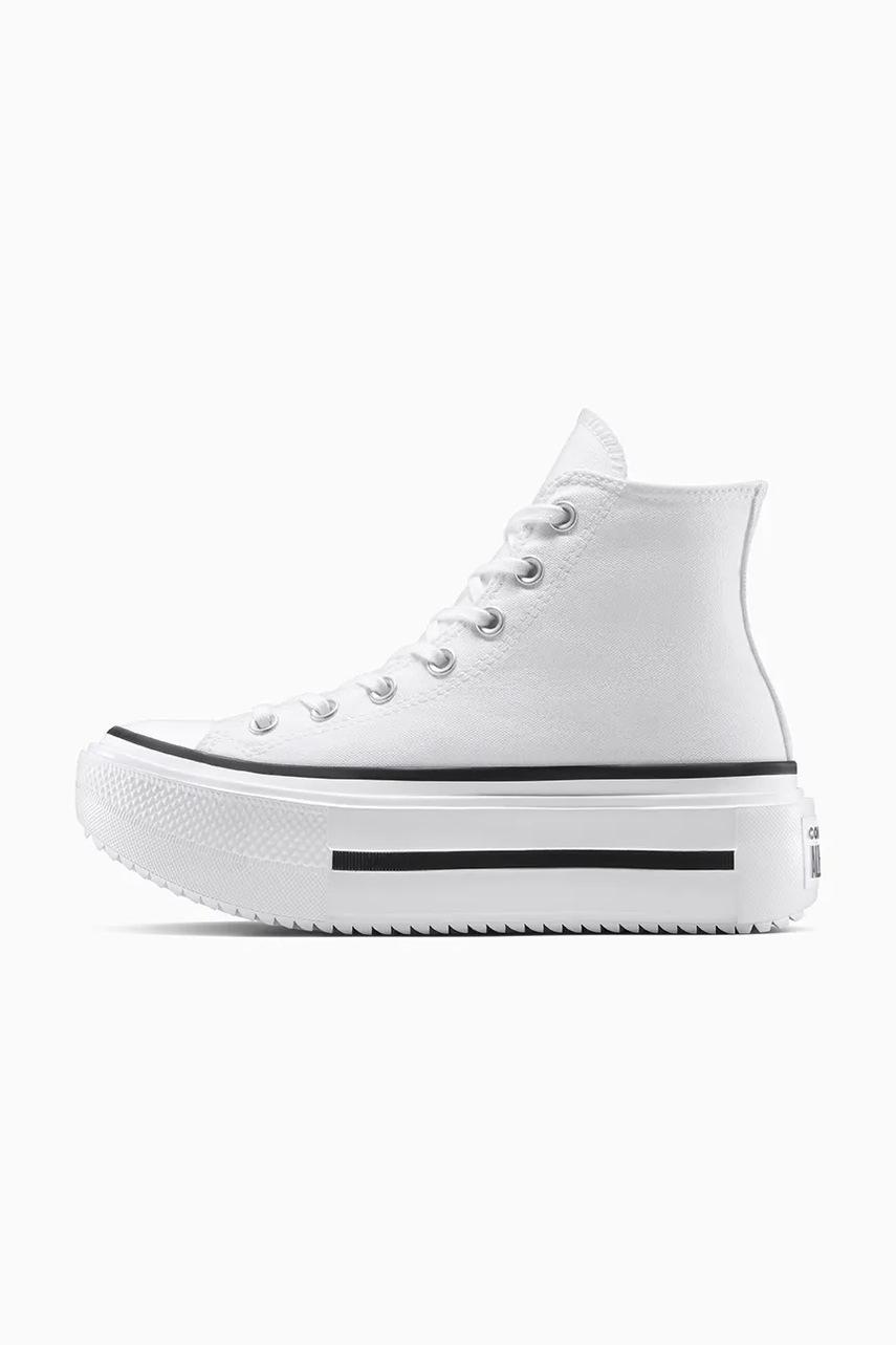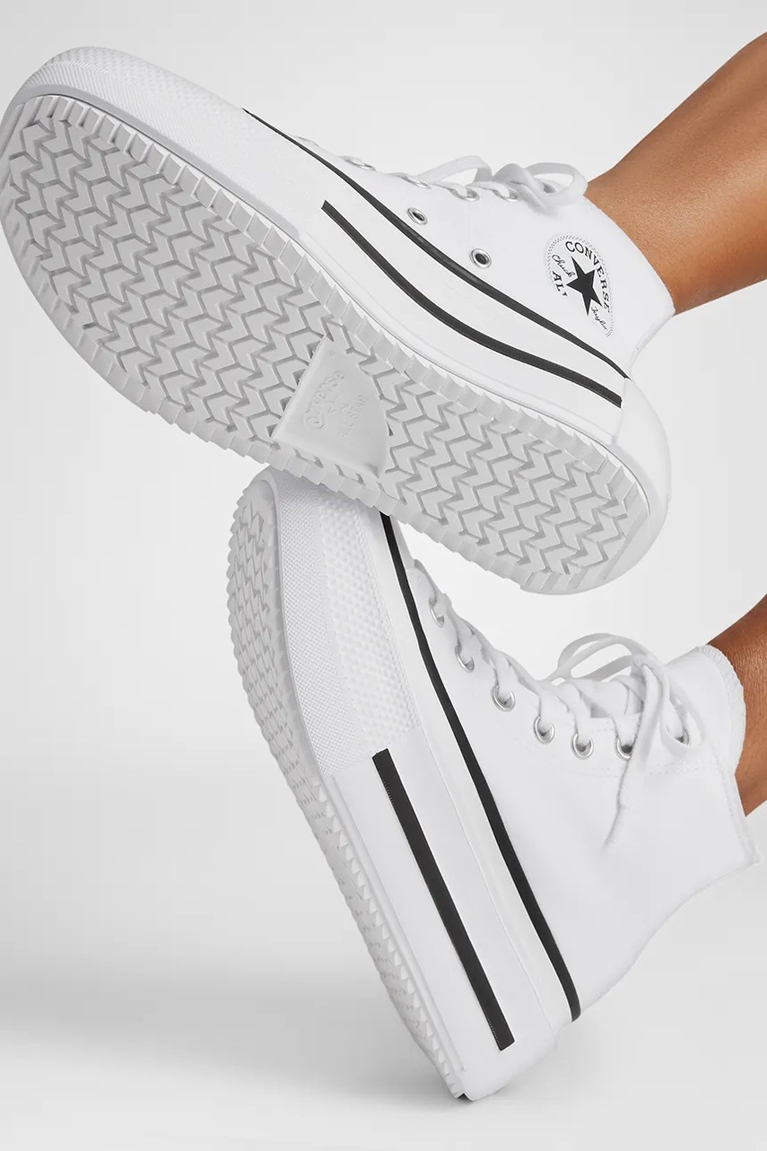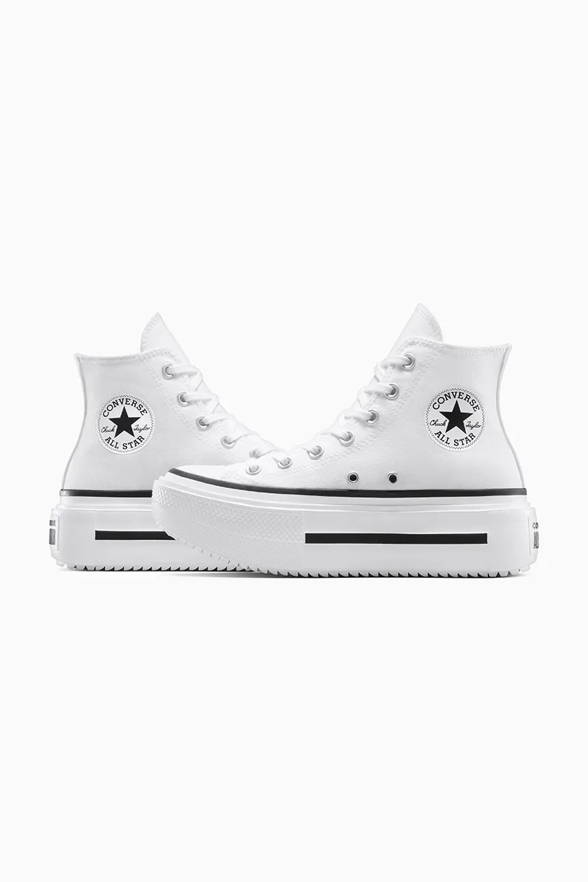 Czym wyróżniają się trampki na platformie Converse A12976C?Brak ocieplenia i zastosowanie lekkiego materiału tekstylnego gwarantują oddychalność oraz świetne dopasowanie do codziennego użytkowania w cieplejsze dniCholewka wykonana z wytrzymałego materiału tekstylnego zapewnia swobodę ruchu oraz komfort nawet podczas długiego noszeniaPlatformowa podeszwa o grubości 4-6 cm dodaje wzrostu, podkreśla nowoczesny look i skutecznie izoluje od podłożaMateriał włókienniczy wewnątrz buta pozytywnie wpływa na przepływ powietrza, minimalizując uczucie zmęczenia stópOkrągły, zabudowany nosek nie tylko wpisuje się w klasyczną sylwetkę trampków, ale także chroni palce przed urazamiSznurowane zapięcie umożliwia indywidualne dopasowanie szerokości, co zwiększa wygodę użytkowania na co dzieńJednolita, gładka kolorystyka i ozdobne naszywki czynią ten model doskonałą bazą do stylizacyjnych eksperymentów, pozwalając wyróżnić się z tłumu