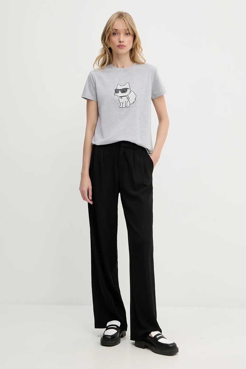 Karl Lagerfeld t-shirt bawełniany IKON damski kolor szary A3W17110