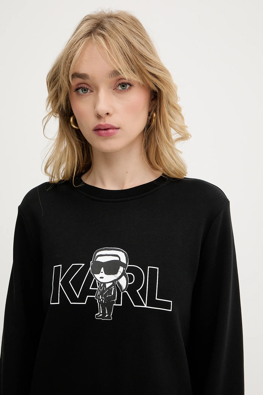 Karl Lagerfeld bluza bawełniana IKON damska kolor czarny z nadrukiem A3W20056
