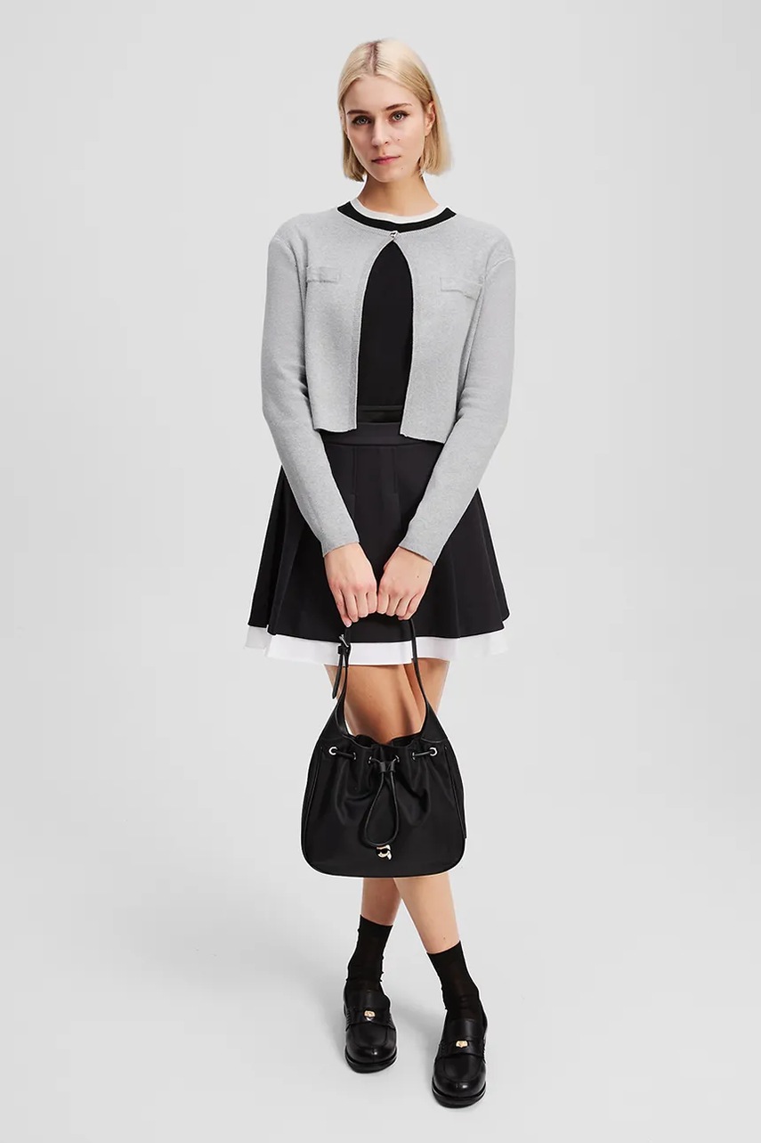 Karl Lagerfeld kardigan z domieszką wełny IKON damski kolor szary lekki A3W18033