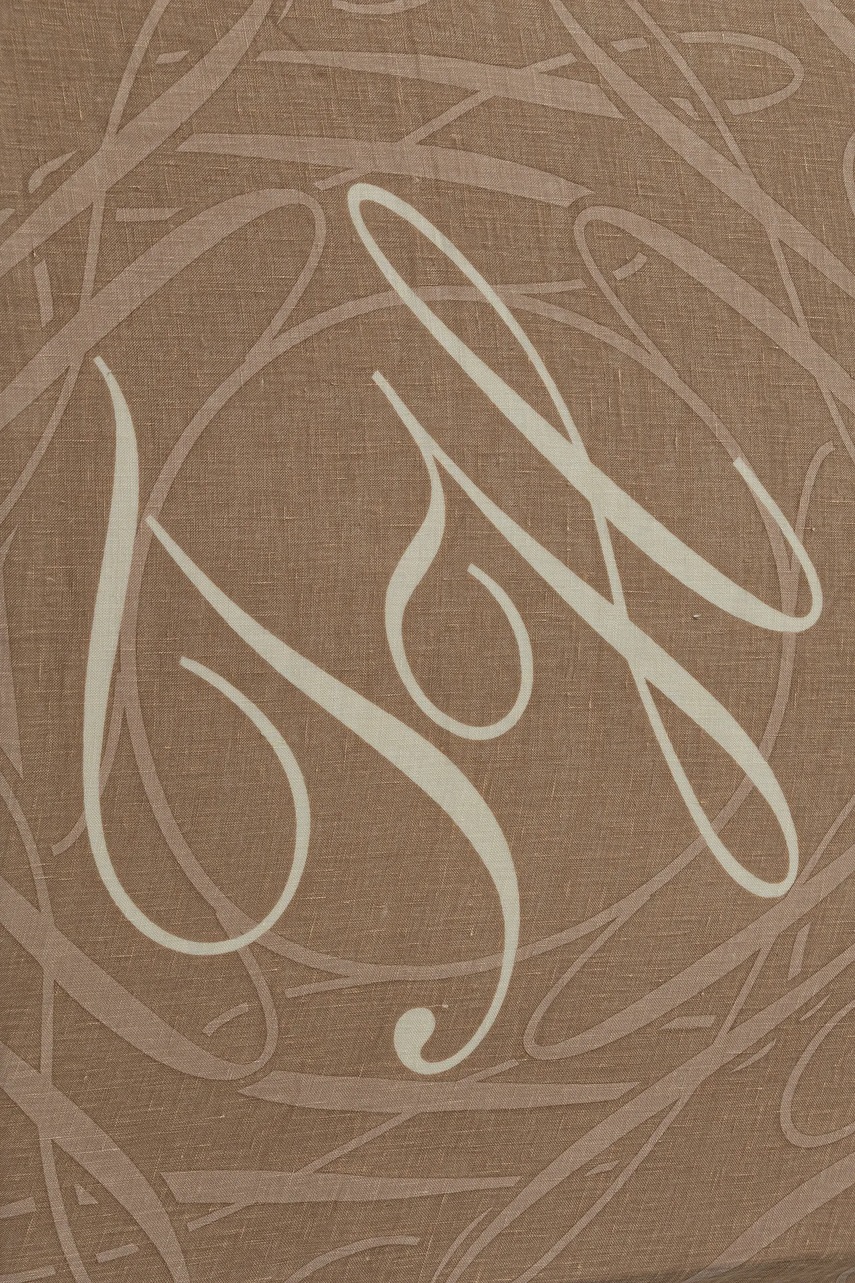 Tommy Hilfiger chusta lniana damska kolor beżowy wzorzysta AW0AW17491