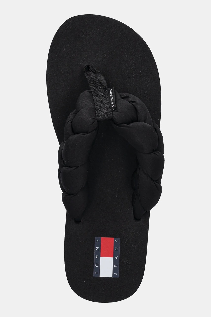 Tommy Jeans japonki BRAIDED THONG BEACH SANDAL damskie kolor czarny na płaskim obcasie EN0EN02877