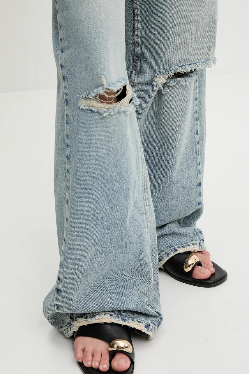 - Model z podwyższoną talią i zapięciem na guzik i suwak.