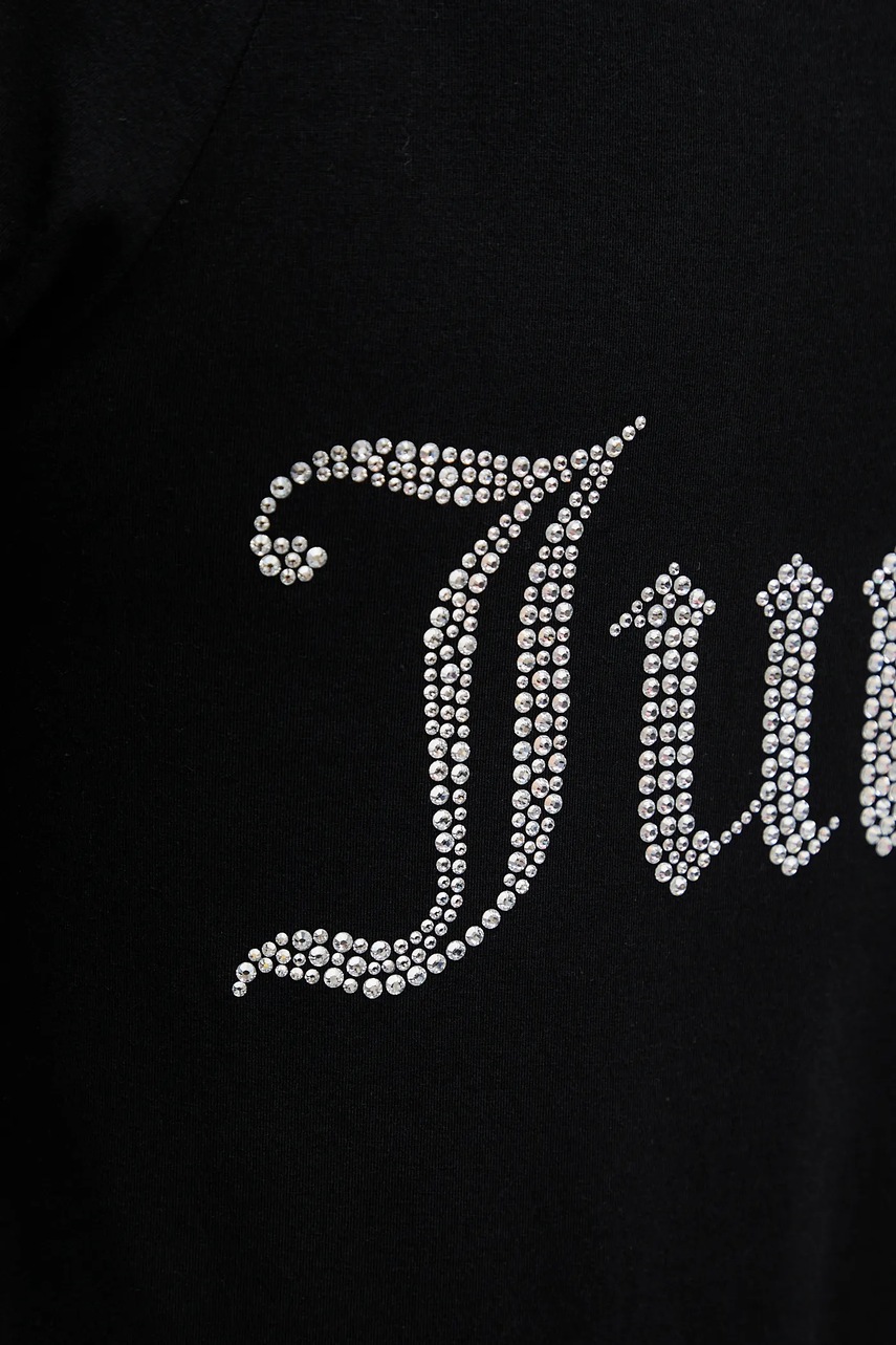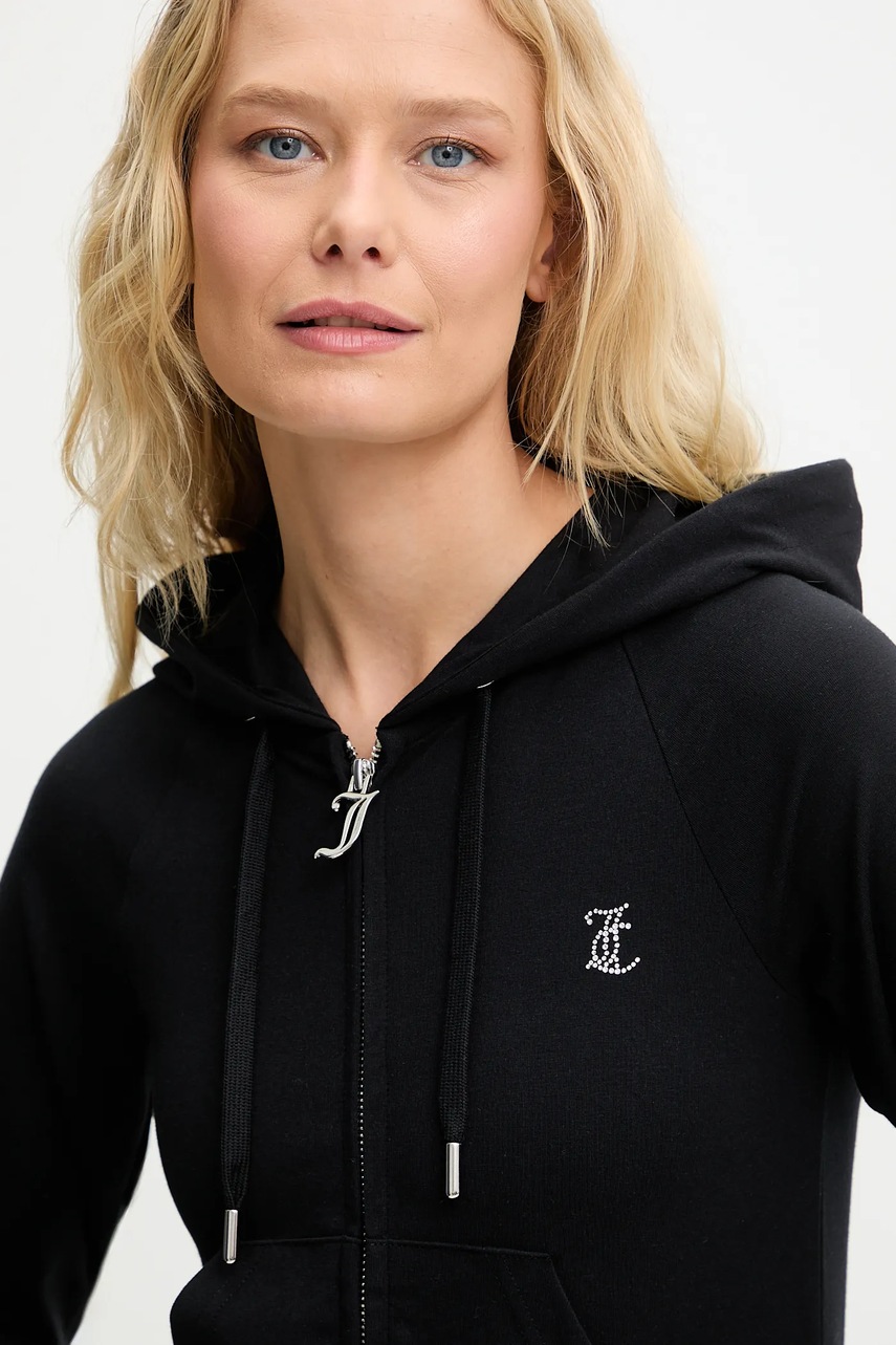 Juicy Couture bluza SINGLE JERSEY OLA HOODIE damska kolor czarny z kapturem z aplikacją JCWAS125310