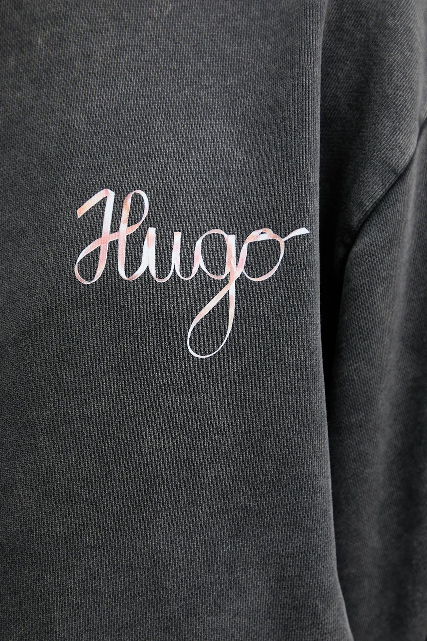HUGO bluza bawełniana damska kolor szary z kapturem z nadrukiem 50544870