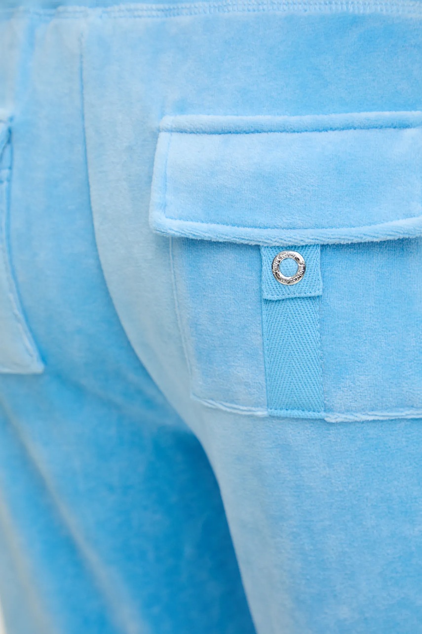 Juicy Couture spodnie dresowe welurowe CAISA LOW RISE PANT damskie kolor niebieski gładkie JCSEBJ008