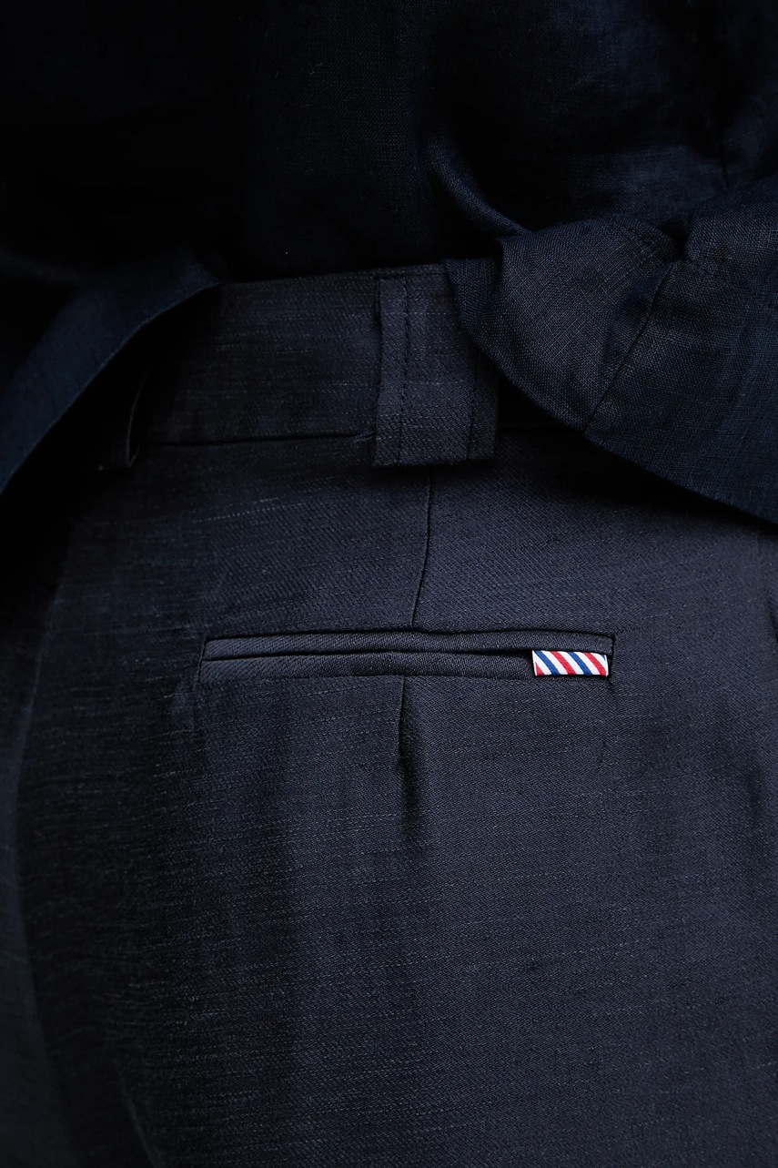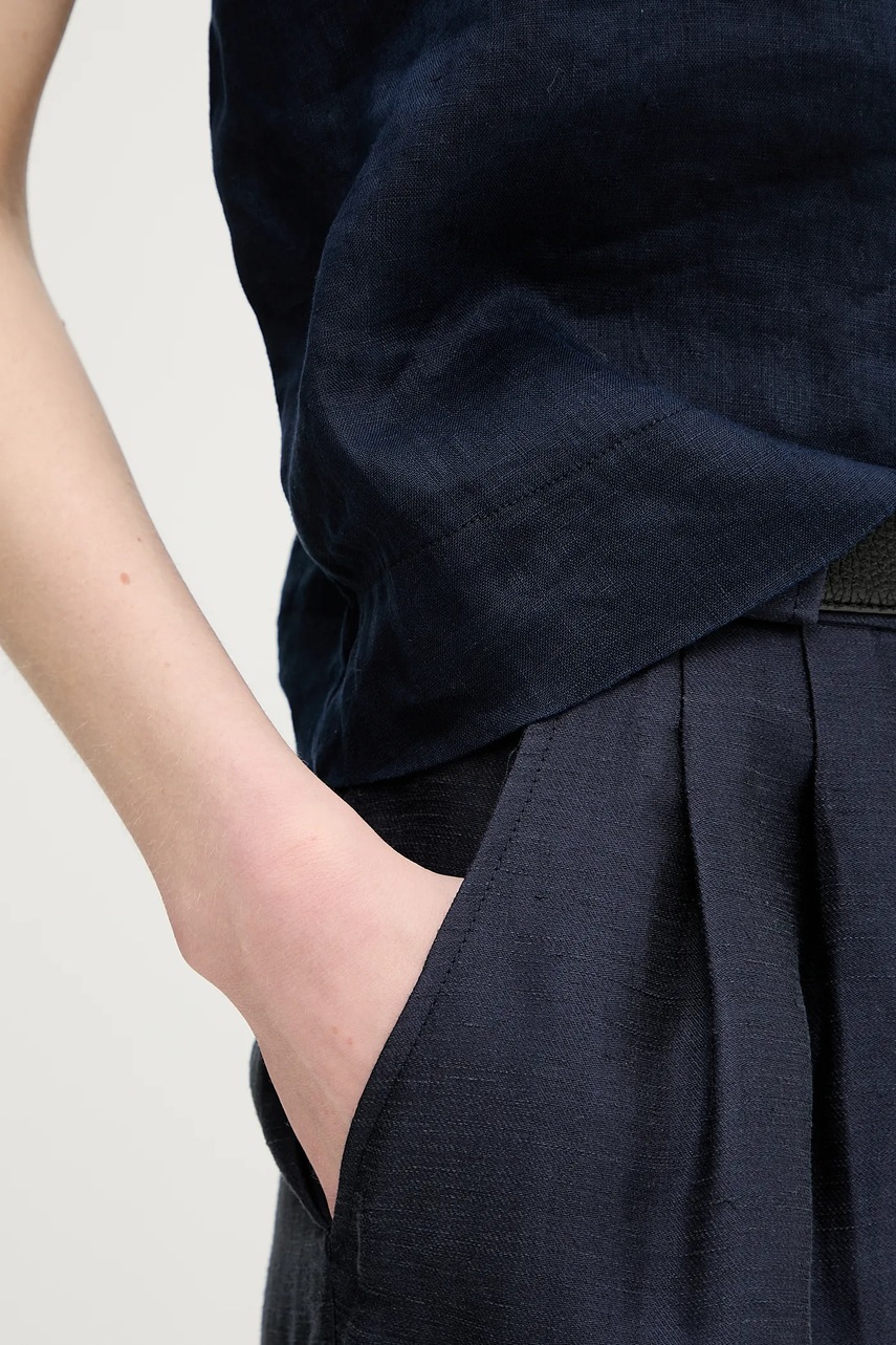 La Petite Française szorty z domieszką lnu SAVOUREUX kolor granatowy gładkie high waist SAVOUREUX