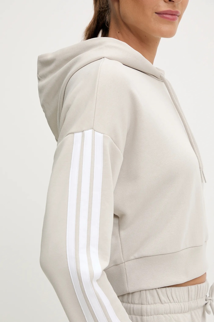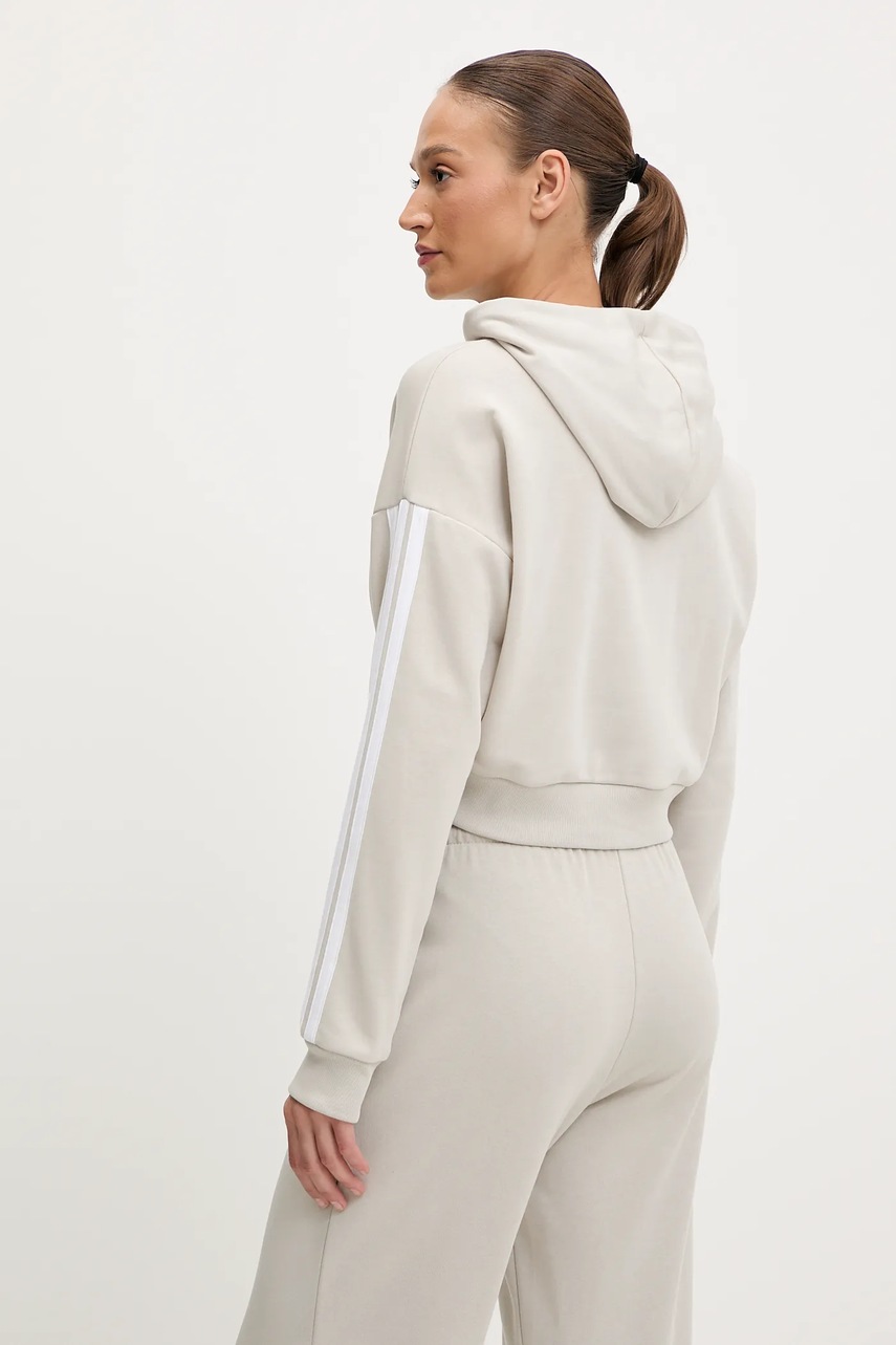 adidas bluza 3-Stripes damska kolor beżowy z kapturem z aplikacją JX7634