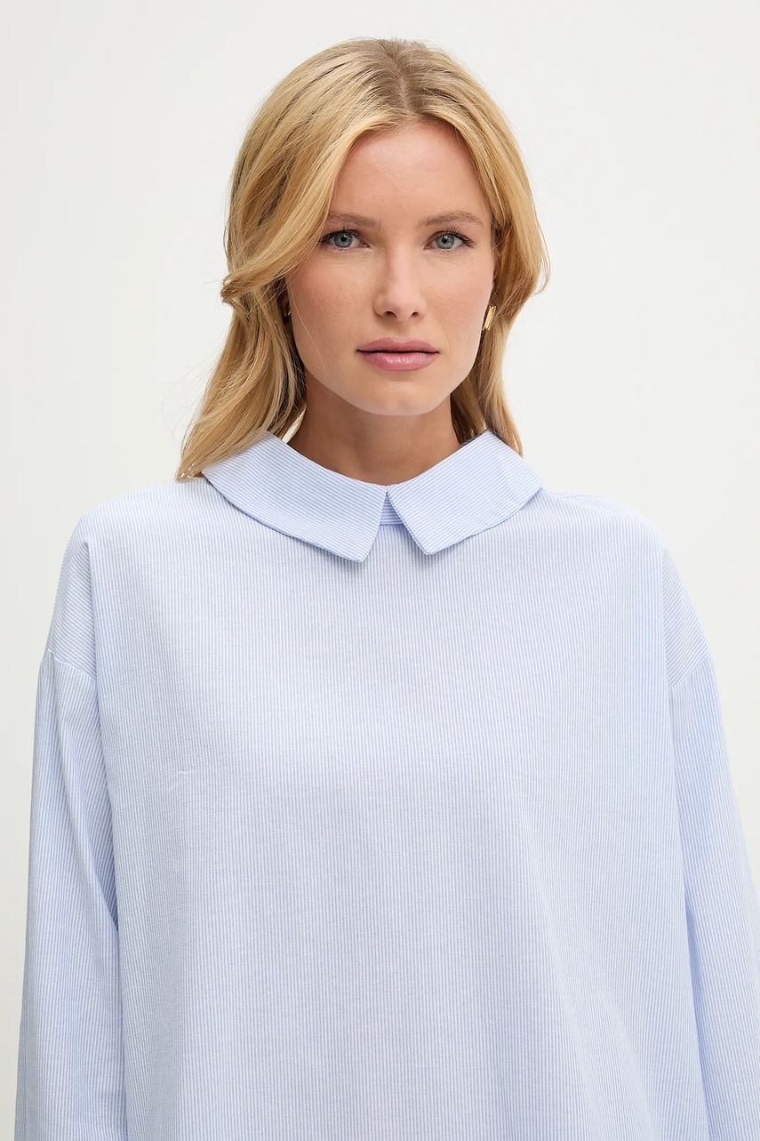 Answear.LAB koszula lniana damska kolor niebieski relaxed z kołnierzykiem klasycznym