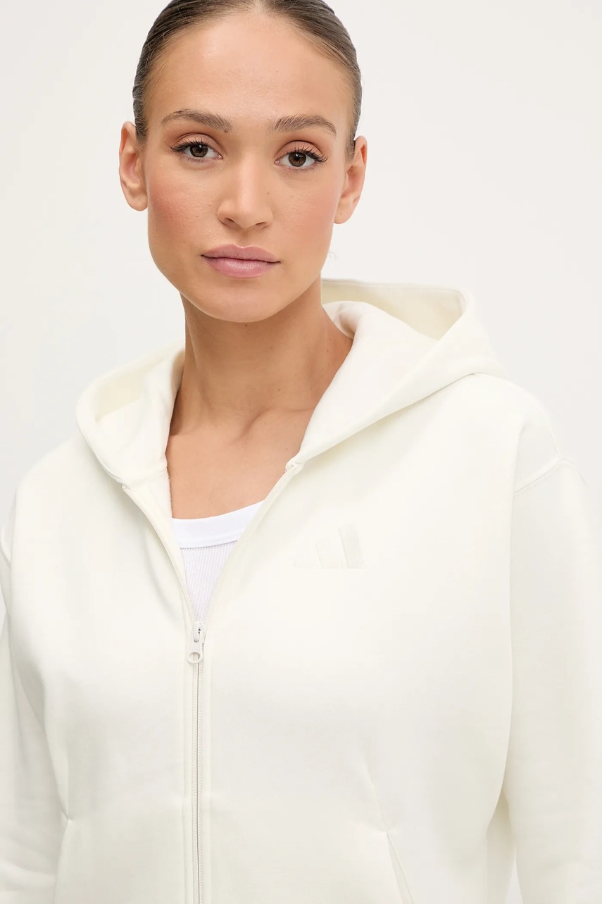 adidas bluza All SZN damska kolor beżowy z kapturem gładka JD4689