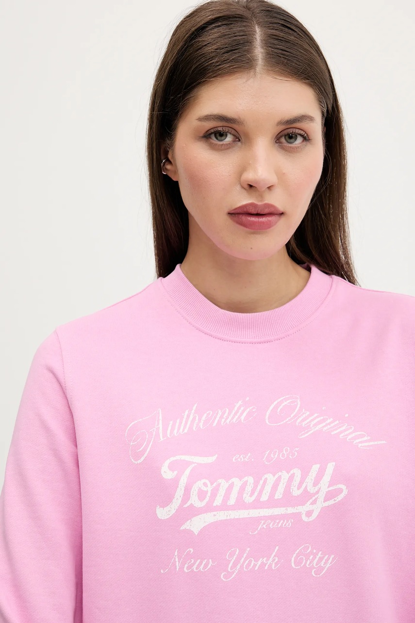 Tommy Jeans bluza bawełniana damska kolor różowy z nadrukiem DW0DW20942