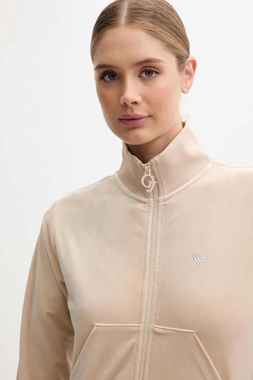 Guess bluza welurowa COUTURE damska kolor beżowy gładka V3BQ22 K0232