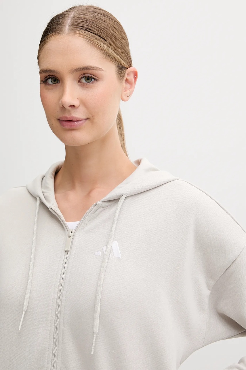 adidas bluza Essentials damska kolor beżowy z kapturem gładka JW1821