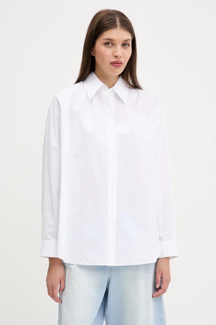 Hugo Blue koszula bawełniana damska kolor biały relaxed z kołnierzykiem klasycznym 50542985