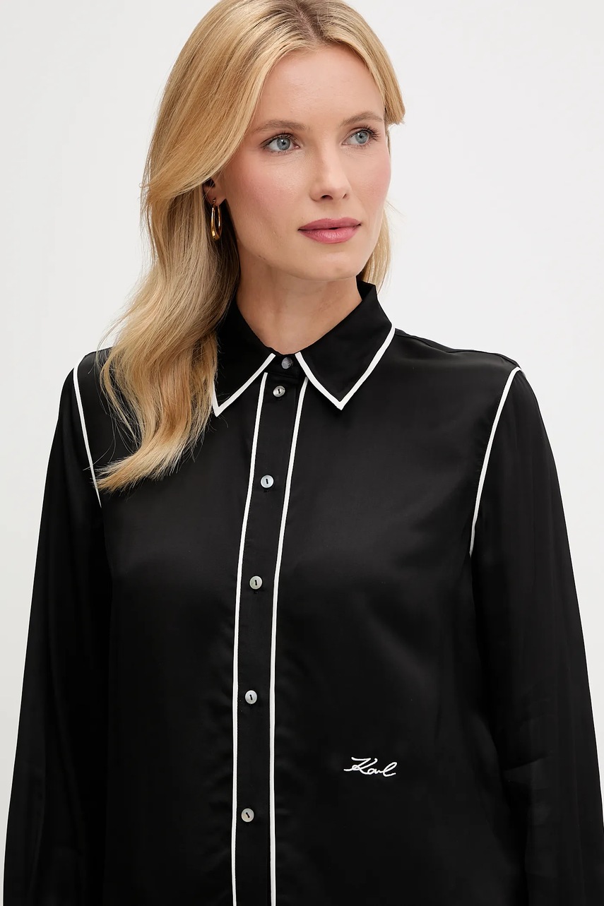 Karl Lagerfeld koszula damska kolor czarny regular z kołnierzykiem klasycznym A3W11012