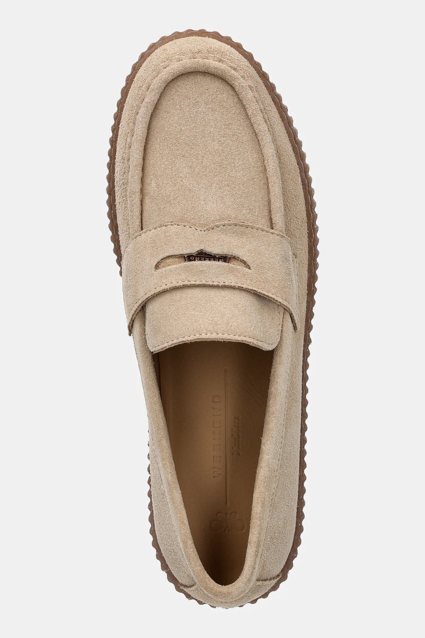 Weekend Max Mara mokasyny zamszowe Kapokloafer damskie kolor beżowy na platformie 2525526054600