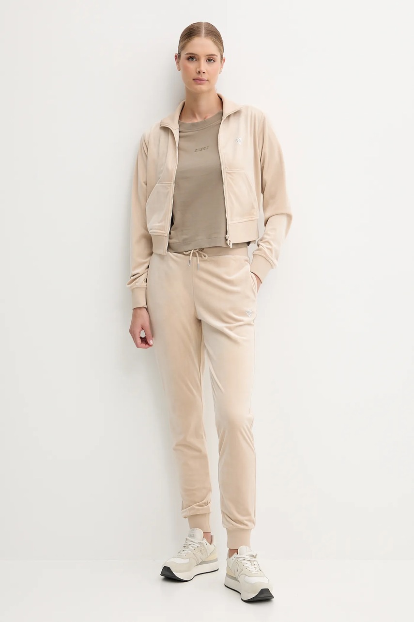 Guess spodnie dresowe welurowe COUTURE damskie kolor beżowy gładkie V3BB27 K0232