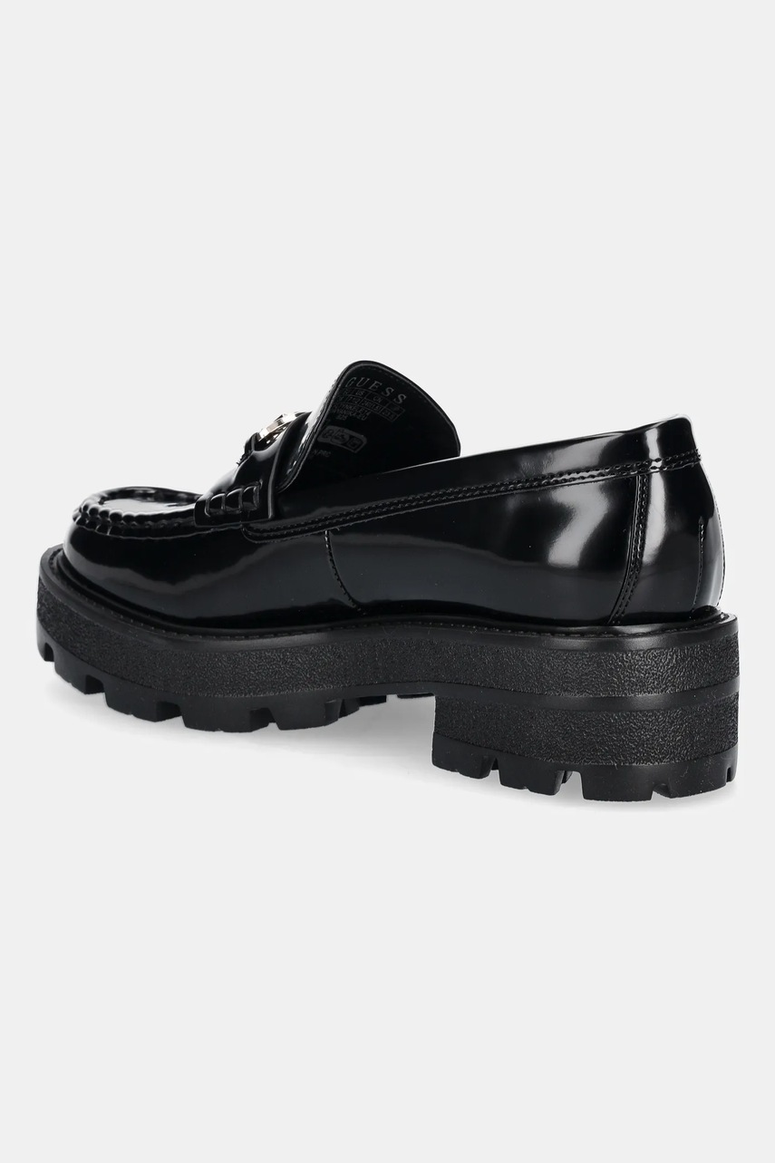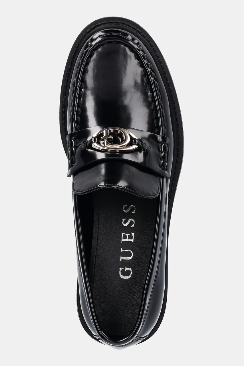 Guess mokasyny YANIKA damskie kolor czarny na płaskim obcasie FLTYNK ELE14