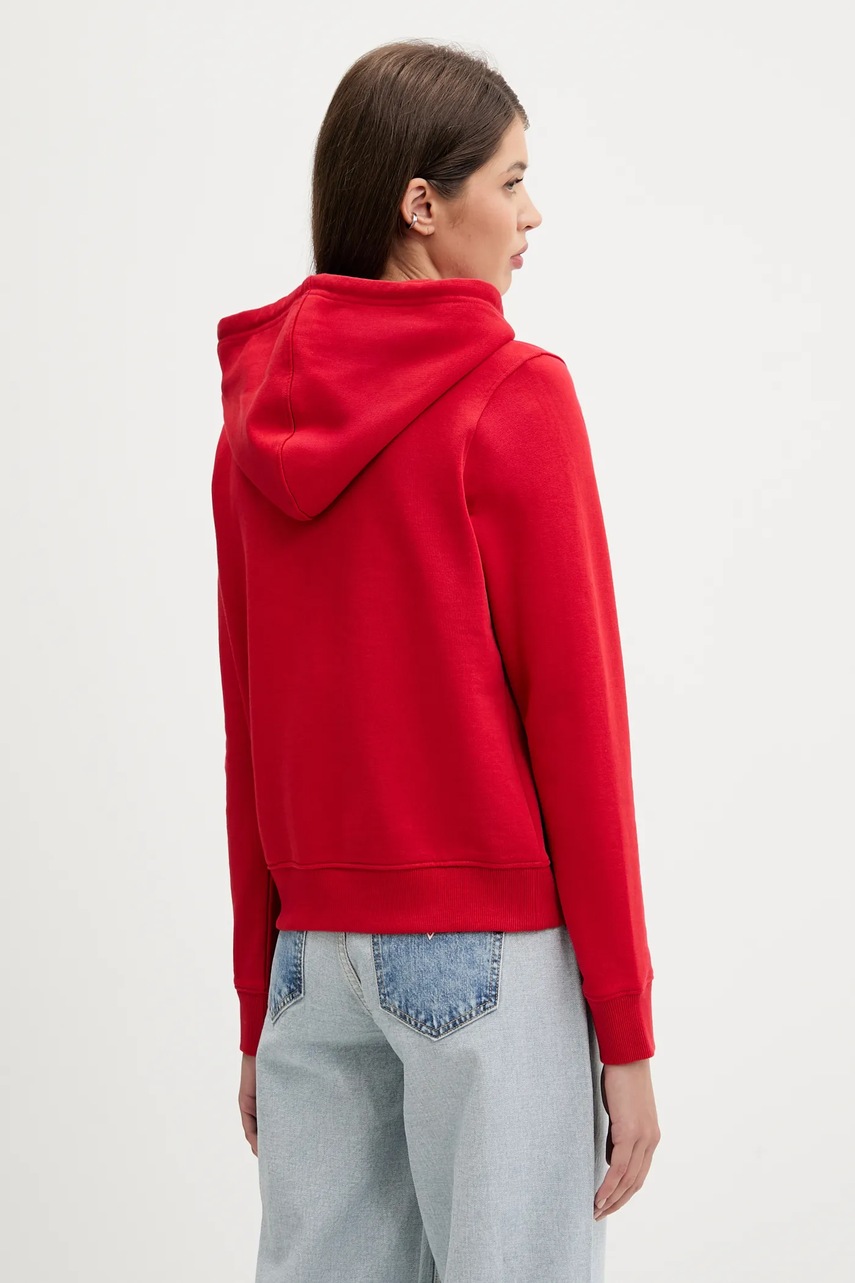 Guess Jeans bluza bawełniana damska kolor czerwony z kapturem z aplikacją W5YQ13 K68I4
