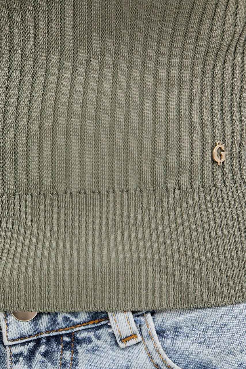 Guess sweter JAYLA damski kolor zielony z półgolfem W5YR04 Z0040