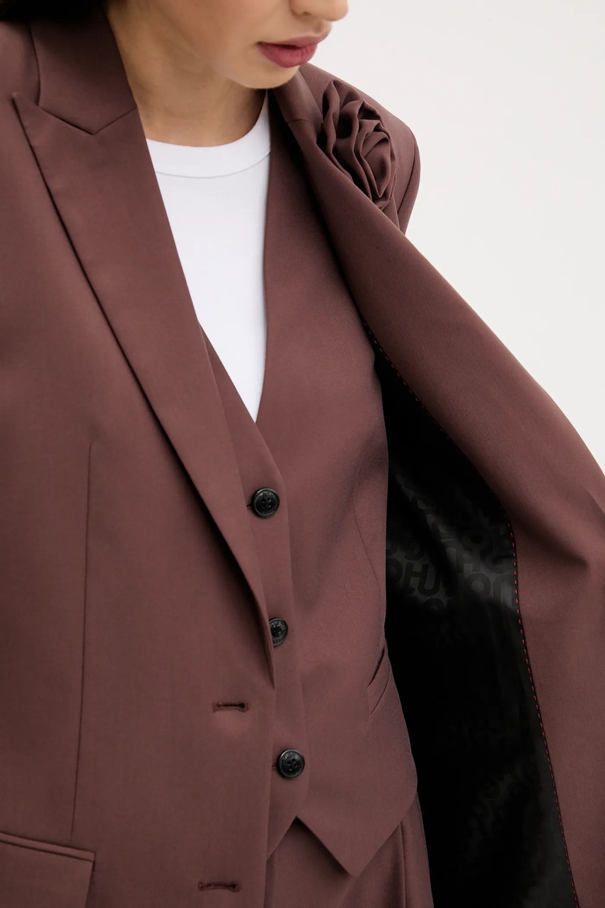 HUGO marynarka kolor brązowy jednorzędowa gładka 50544133