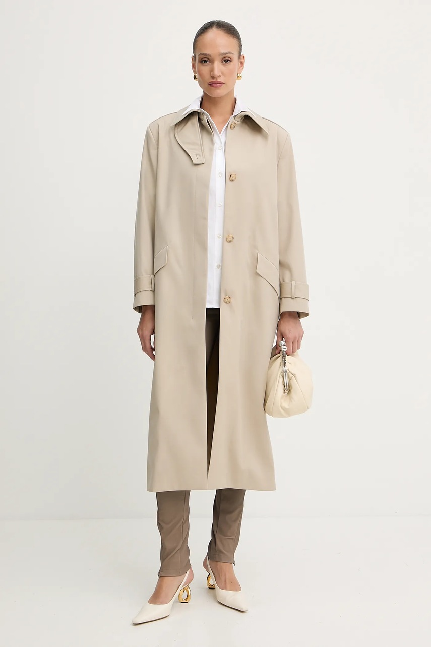 BOSS trencz wełniany damski kolor beżowy przejściowy 50543198