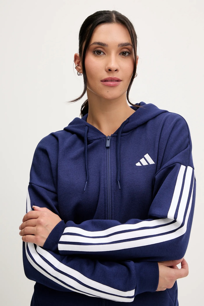 adidas bluza 3-Stripes damska kolor niebieski z kapturem z aplikacją JY3083