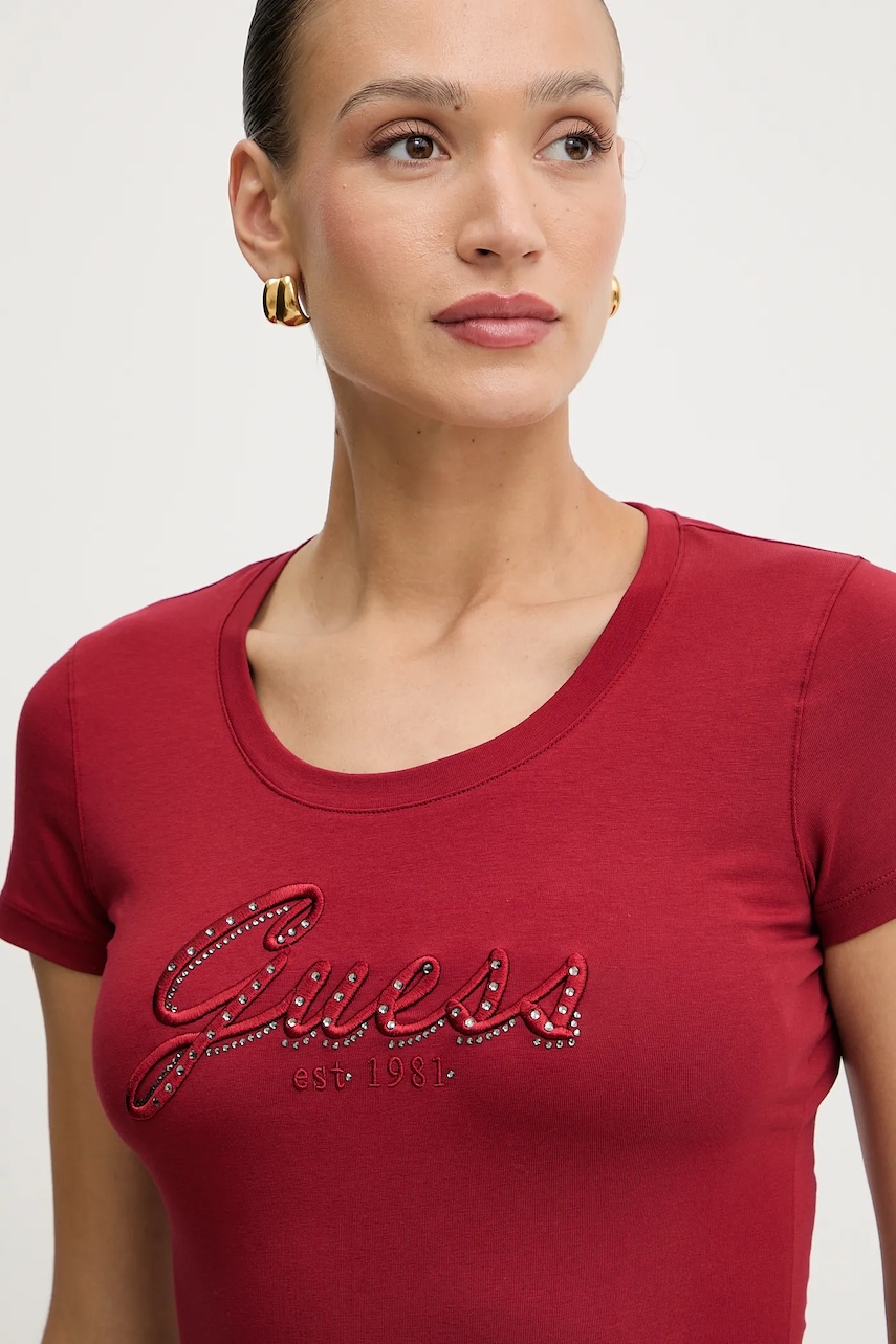 Guess t-shirt damski kolor bordowy W5YI46 J1314
