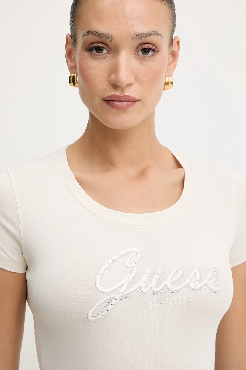 Guess t-shirt damski kolor beżowy W5YI46 J1314