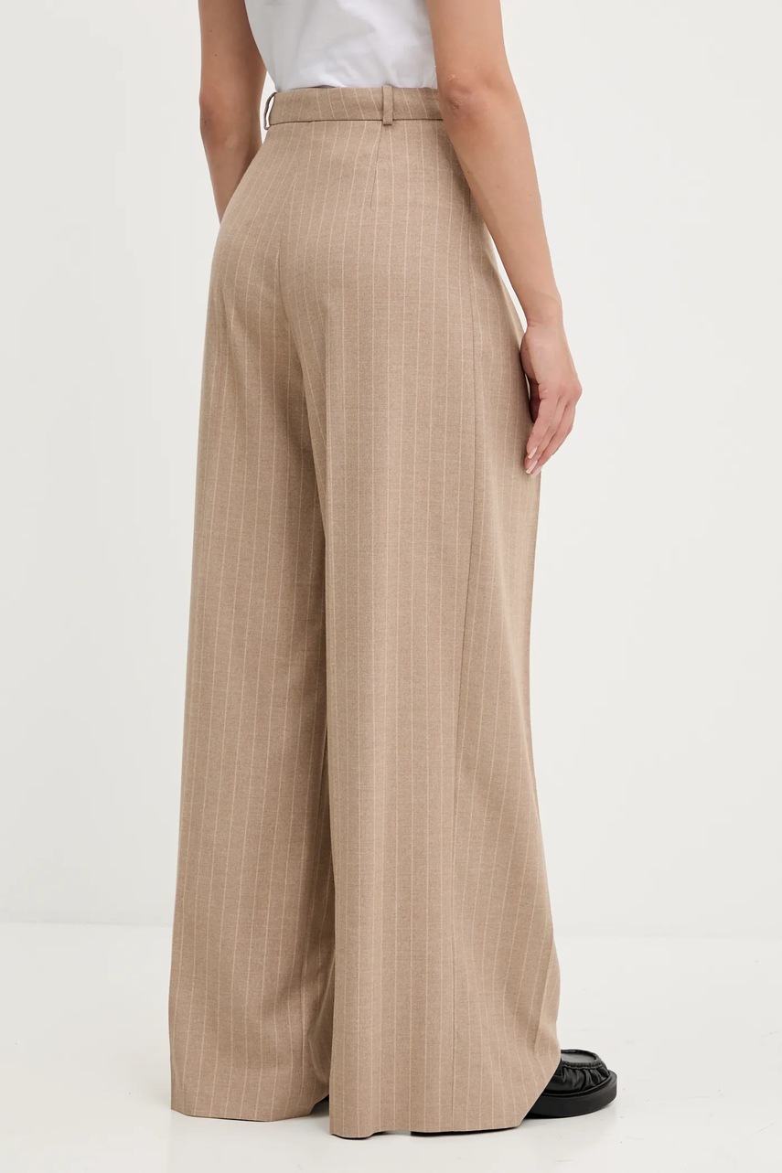 HUGO spodnie damskie kolor brązowy szerokie high waist 50542691