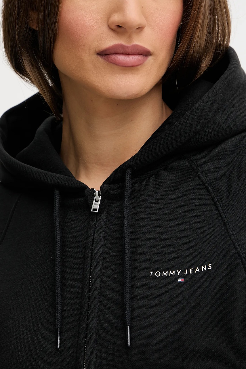 Tommy Jeans bluza damska kolor czarny z kapturem gładka DW0DW21163
