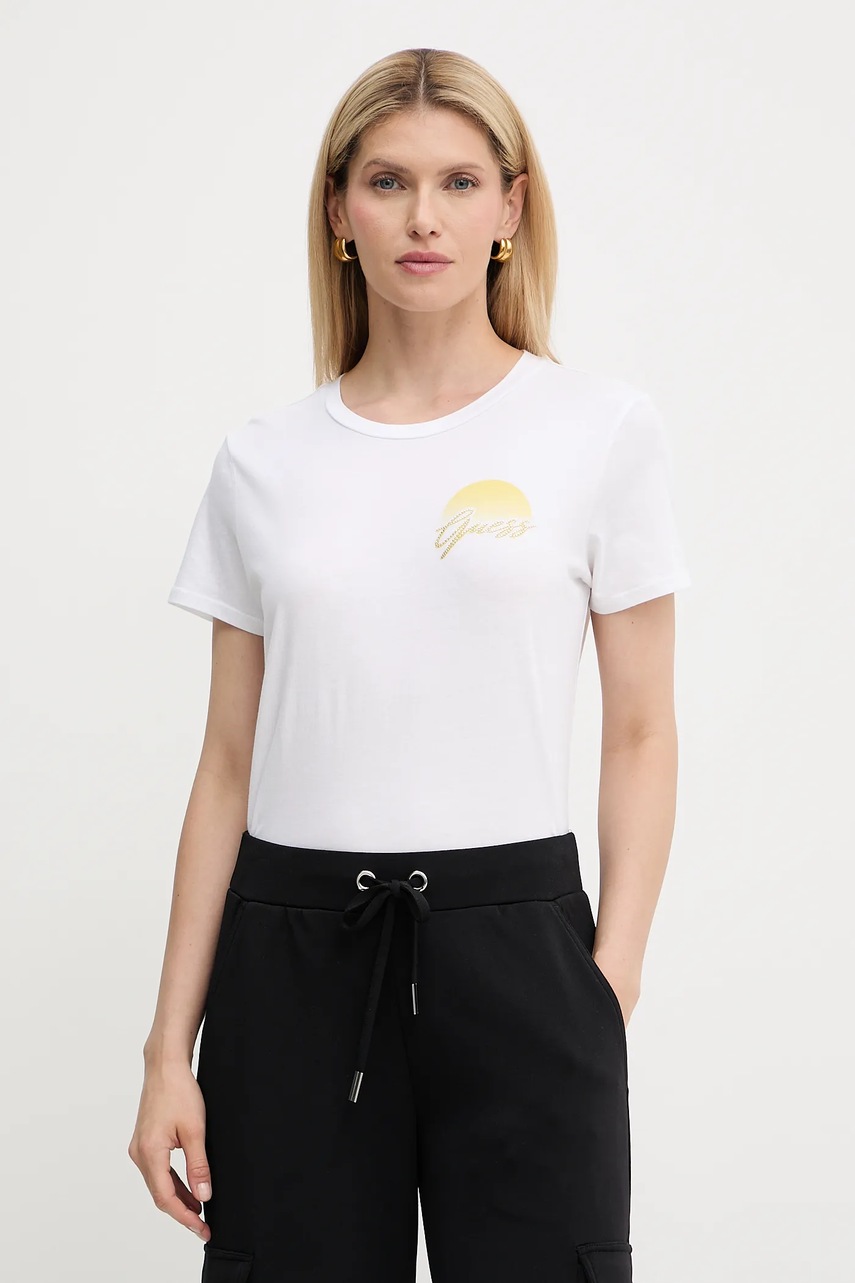 Guess t-shirt bawełniany damski kolor biały W5YI35 K9RM1