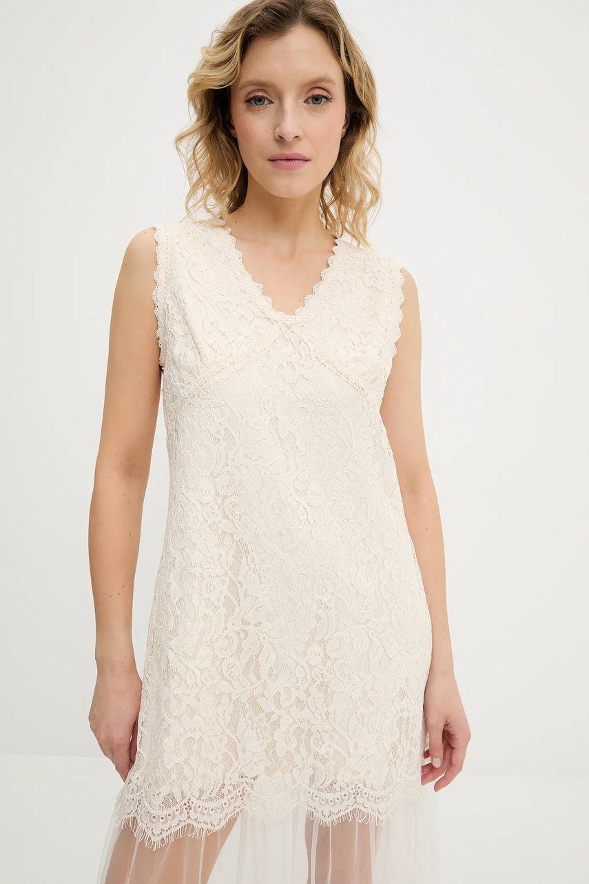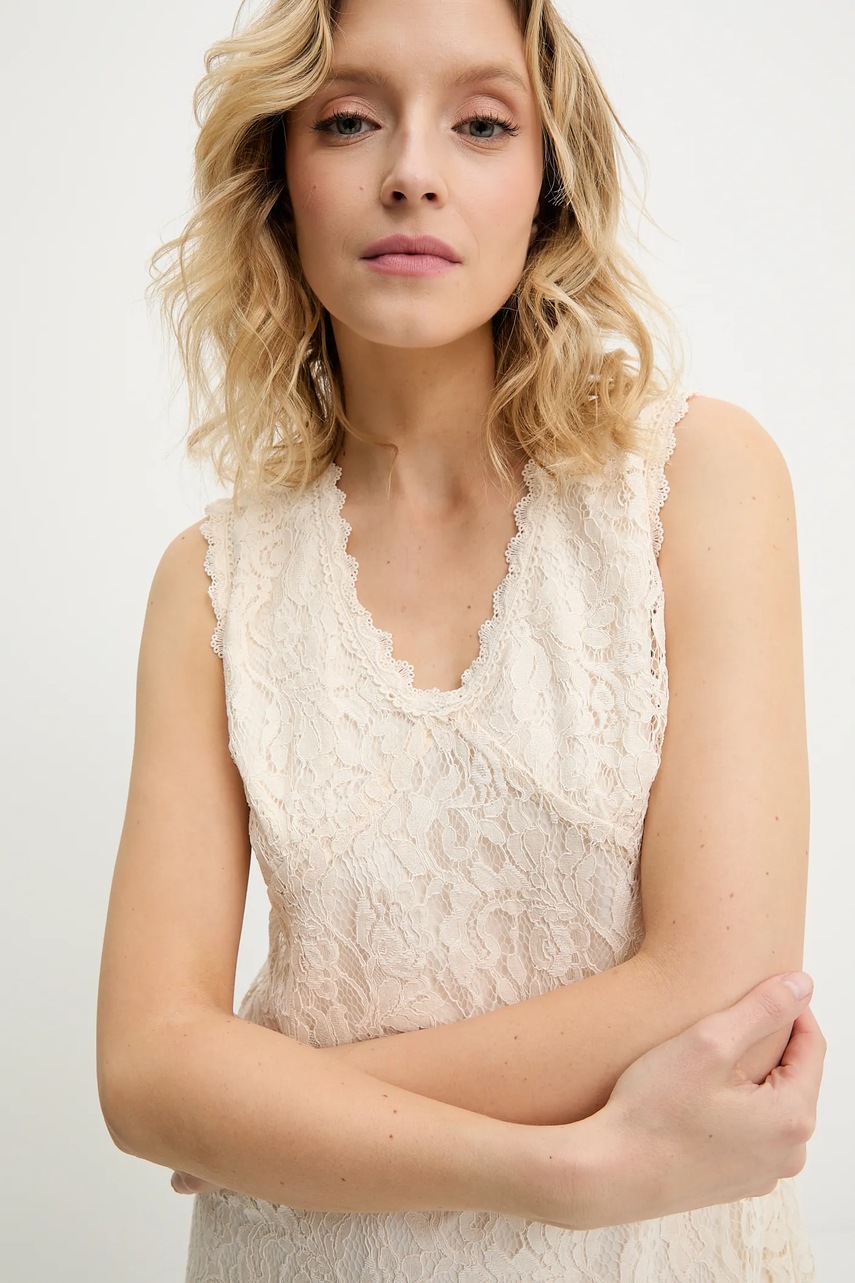 Answear.LAB sukienka kolor beżowy maxi rozkloszowana