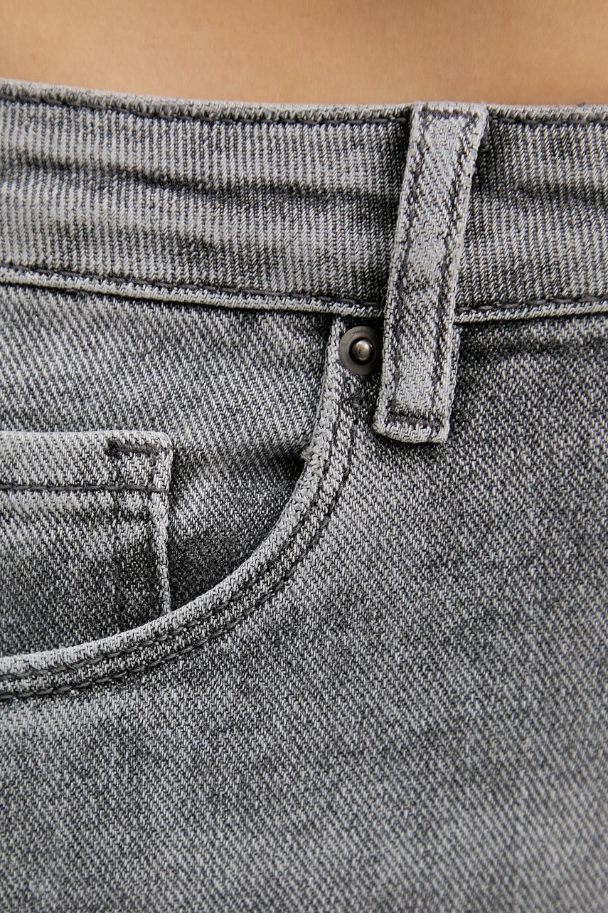 - Model z podwyższoną talią i zapięciem na guzik i suwak.
