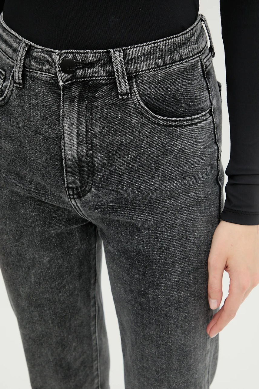 - Model z podwyższoną talią i zapięciem na guzik i suwak.