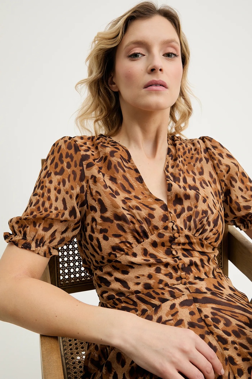 - Krótkie, bufiaste rękawy.