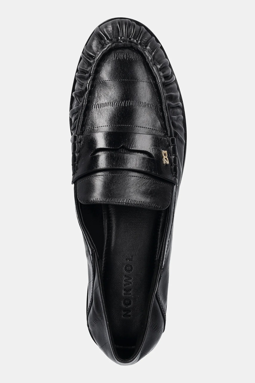 Nokwol mokasyny skórzane Mica damskie kolor czarny na płaskim obcasie Mica