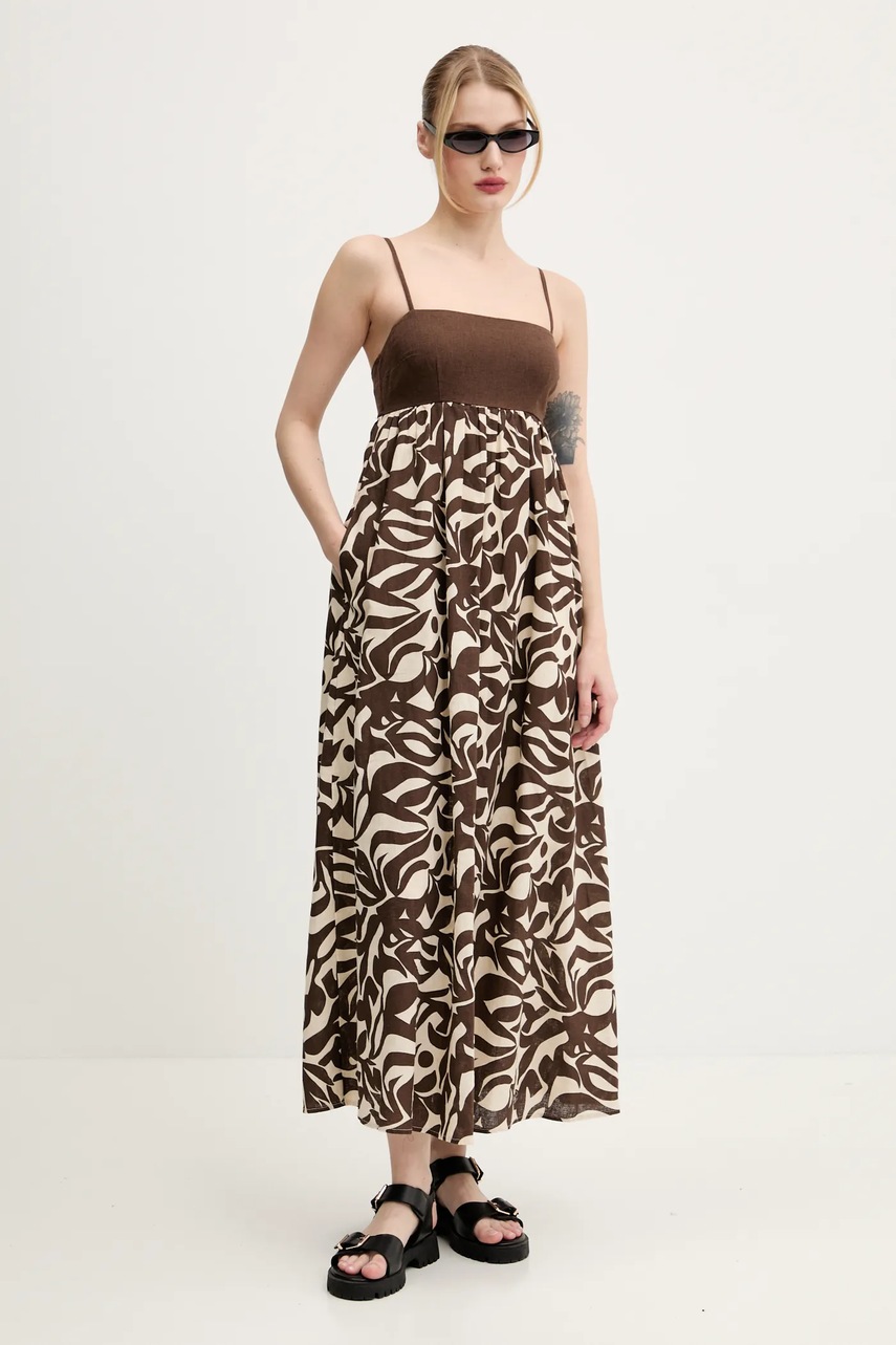 Abercrombie & Fitch sukienka lniana kolor brązowy maxi rozkloszowana KI159-5682