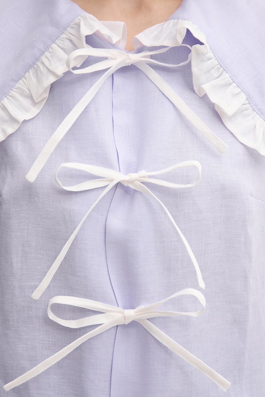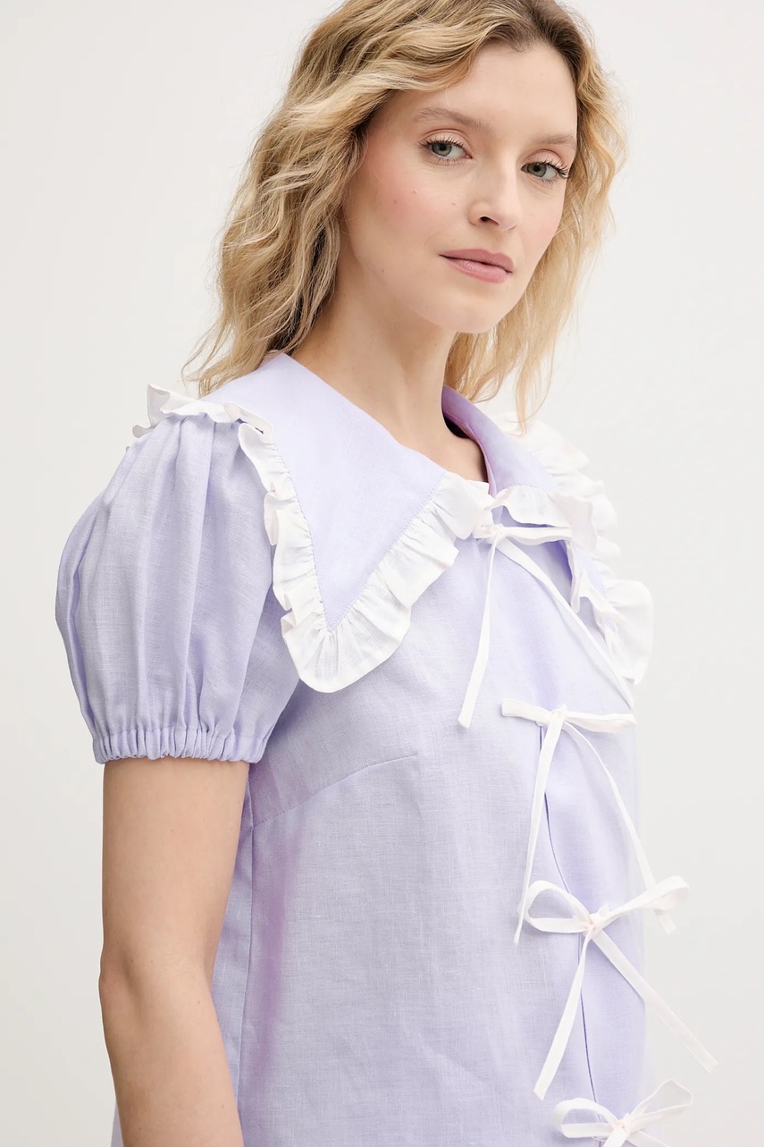 The Sleeper koszula lniana damska kolor fioletowy regular z kołnierzykiem klasycznym PFSR01P009R