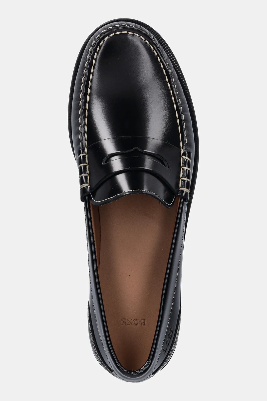 BOSS mokasyny skórzane Lycia damskie kolor czarny na płaskim obcasie 50548570